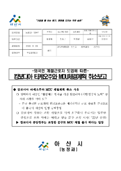 외국인 계절근로자 도입에 따른 캄보디아 타케오주와 MOU 체결 취소 계획보고