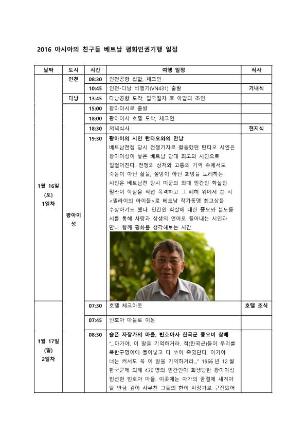 아! 이를 어쩌나 시간이 지날수록 나의 무지와 준비하지 못한 나의 행동에 부끄러움과 미안함의 그림자가 점차 짙게 베여갔다. 아주 오랜 시간 전에 우리의 부모님들이 베트콩하며 이야기하던 월남전의 현실에 나는 할 말을 잊었다. 전쟁에서 살아남은 자들의 역사적 증거가 나를 옭아 메는 것 같았다. 아프고도 너무나 아픈 전쟁의 역사를 증거와 증언으로 다시 살아 움직이고 생명을 얻기 위해, 평화를 기리기 위해 온 몸으로 부딪히고 있는 그와 그들을 보며 나는 참으로 감사한 마음이 일었다. 한 없이 고마웠다.
