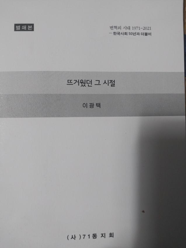 변혁의 시대 1971~2021년 . 한국사회와 더불어 구술집은 이광택 (국민대 명예교수, 한국 ILO협회 회장)의 학생운동, 독일 유학시절 유학생 신분으로 독일 사회에서 참여한 민주화연대 운동, 귀국 후 시민사회활동에 대한 개인 기억 기반 구술 내용이 담겨 있다. (사) 71동지회 50주년 위원회가 엮었고, 민주화운동기념사업회와 민주화운동공제회가 후원하였다.