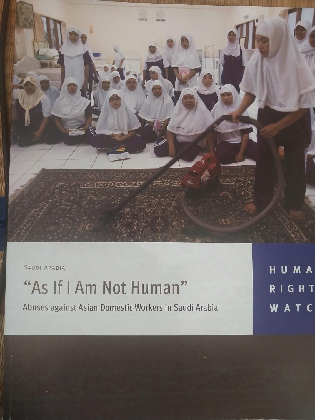 사우디아라비아에서 여성이주노동자로 일하는 아시안계 여성들의 실태 조사보고서이다. 미국의 휴먼라이트워치(Human Rights Watch, HRW)가 발행했다. HRW는 여성들이 노동자로 겪는 인권착취 실태에 주목하였다. 보고서에는 사우디아라비아에거주하는 아시아 여성이주노동자 현황, 고용계약, 국제협약에 근거 노동착취실태를 조사하였고, 강제노동의 문제가 노예수준 이라고 지적하였다.