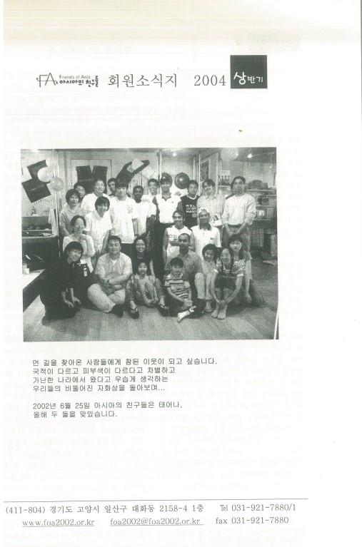 2004년에 발간한 아친 활동 소식지이다. 문서기록으로 이주민들과 함께 한 일상활동들이 목차별로 소개되어 있다.