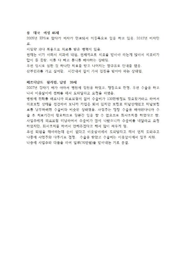 2015 외국인 보건권 개별지원 사례