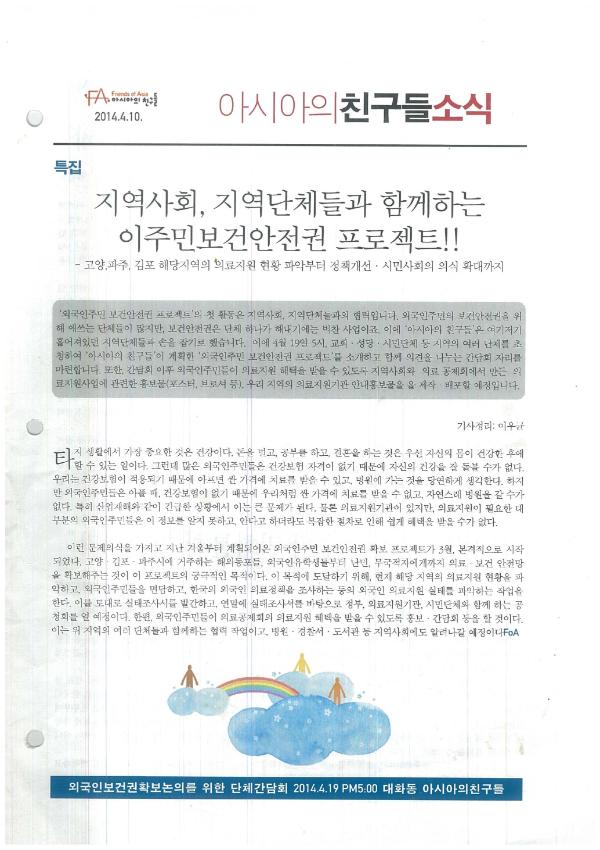 아시아의친구들 소식지 2014년 상반기(날짜: 2014.04.10)
