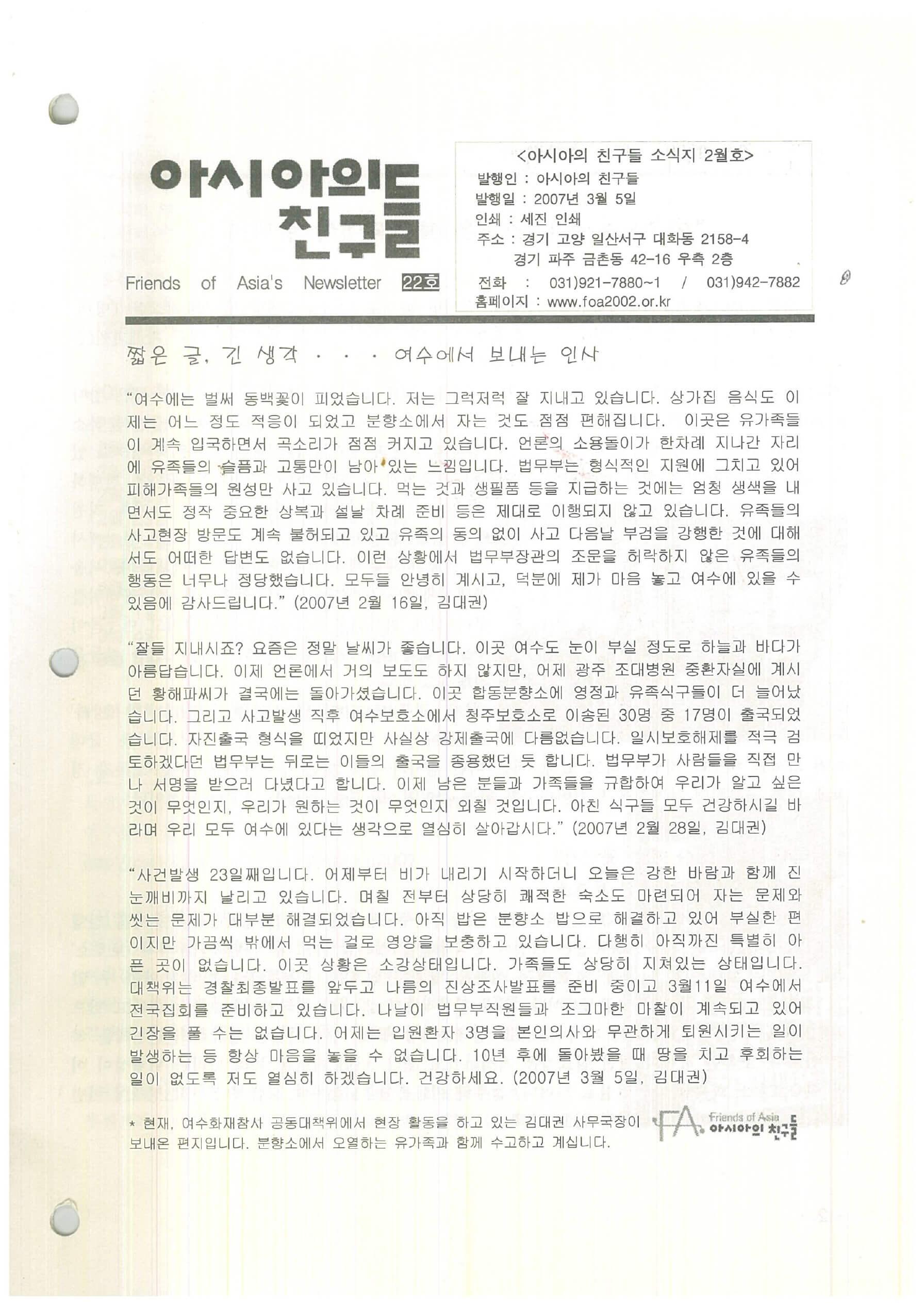 아시아의친구들 소식지 22호(날짜: 2007.03.05)