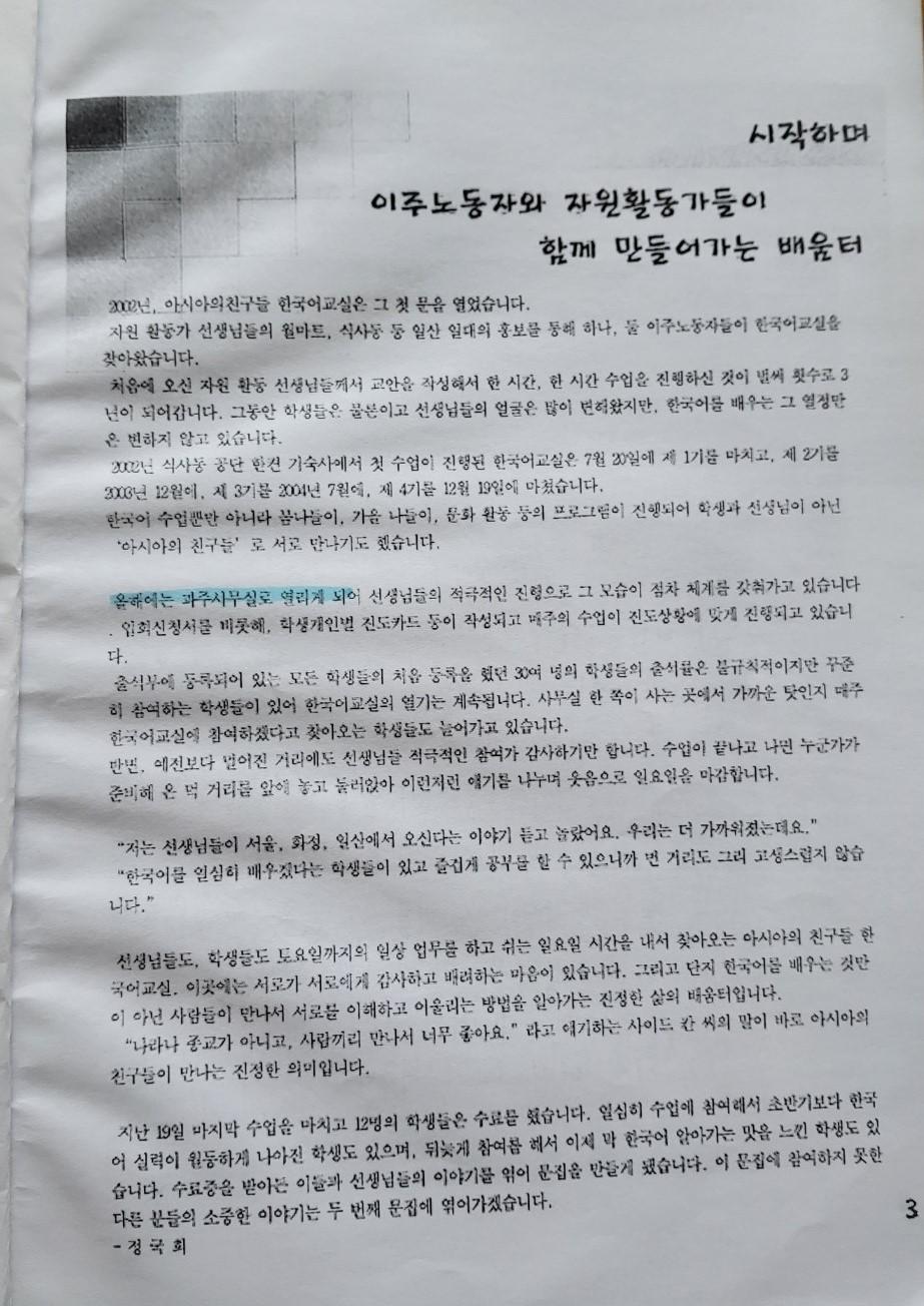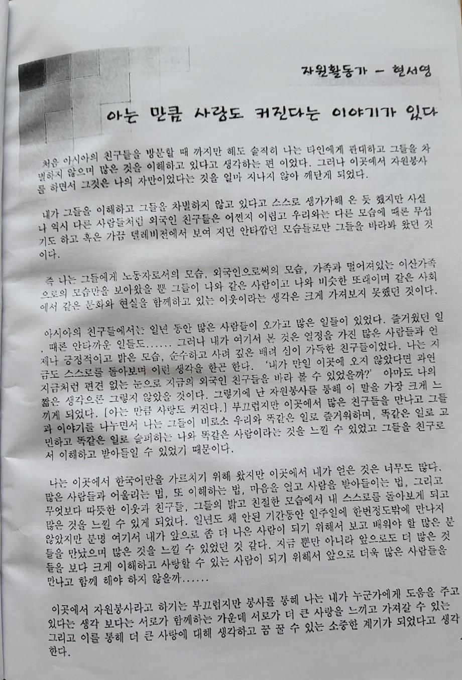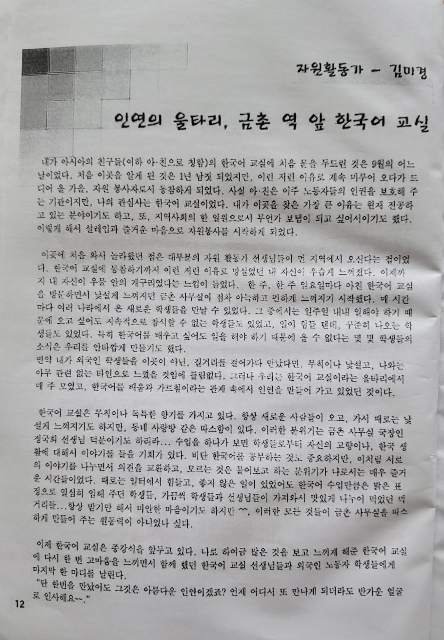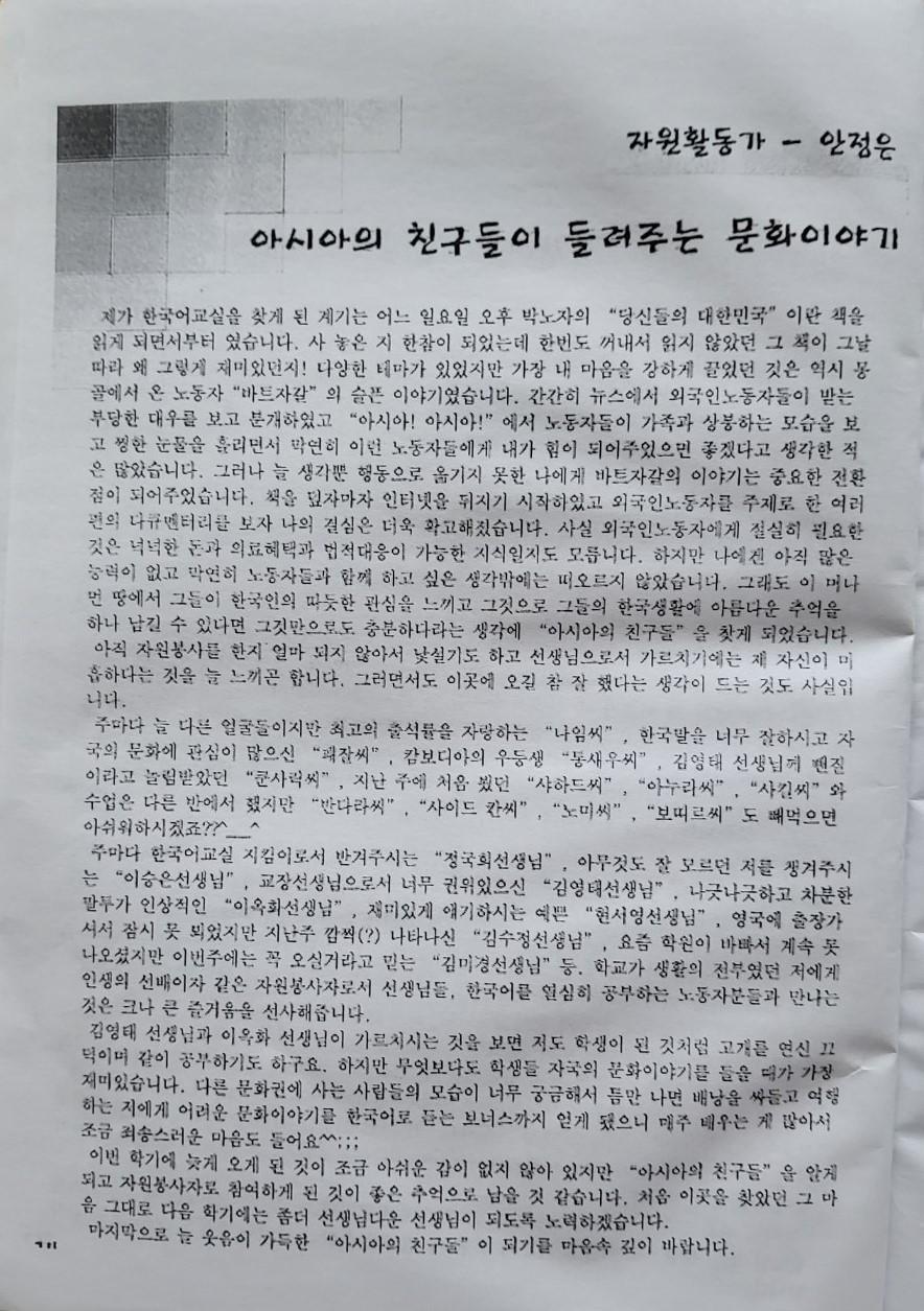 한국어교실 문집 첫번째(날짜: 2004.12.26)