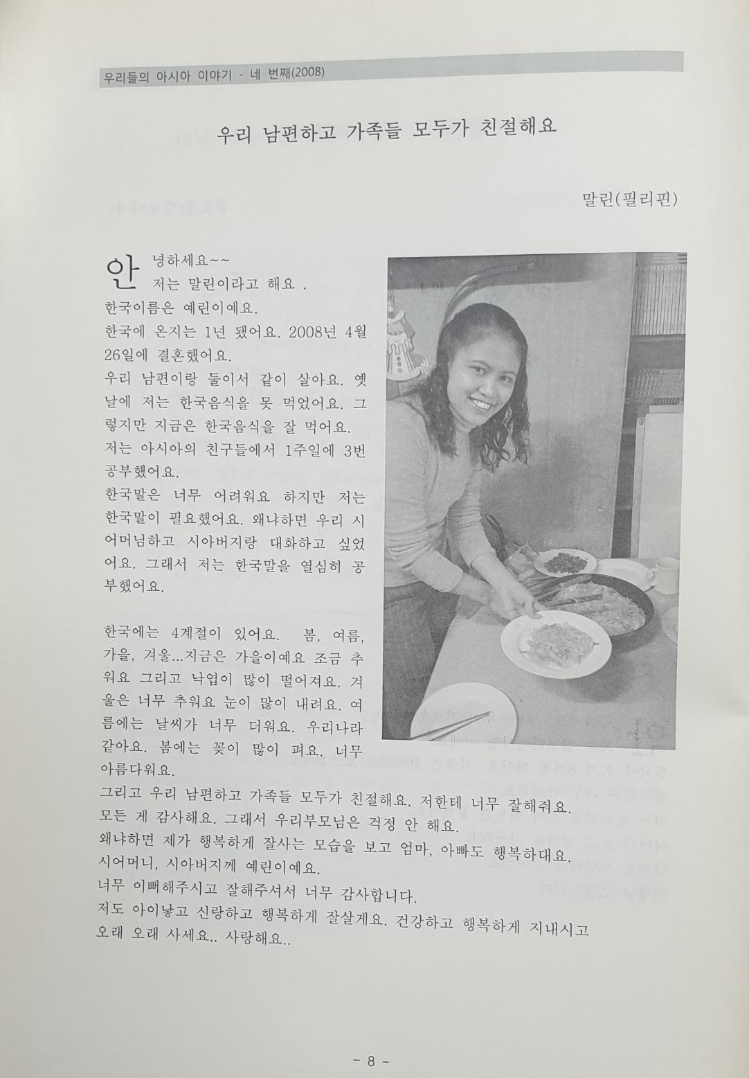 필리핀에서 온 말린의 한국 가족에 대한 고마움과 사랑이 담긴 글이다