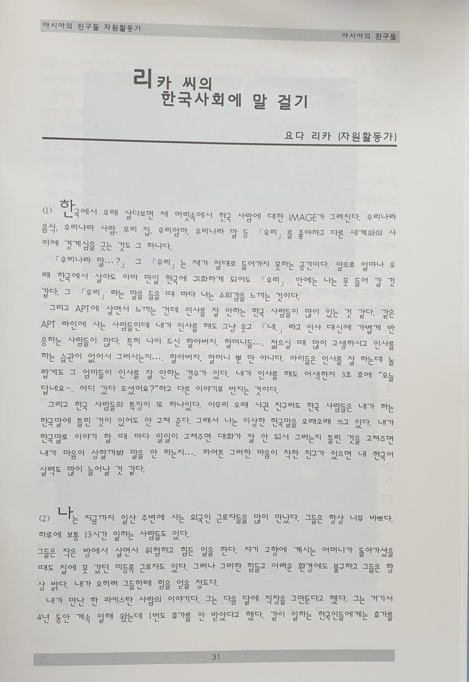 일본에서 온 리카씨의 한국 사회의 양면성에 대한 깊이 있는 관찰기이다