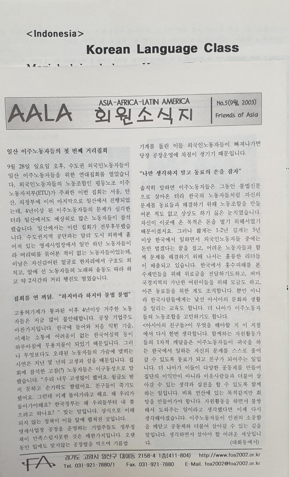일산 이주노동자들의 첫 번째 거리집회 소식을 전하고 있다