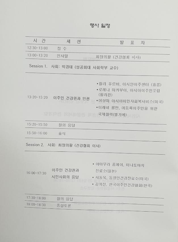 국제포럼 - 인권의 눈으로 본 이주민 건강권 : 시민사회의 응답과 인권적 관점에서의 전략개발