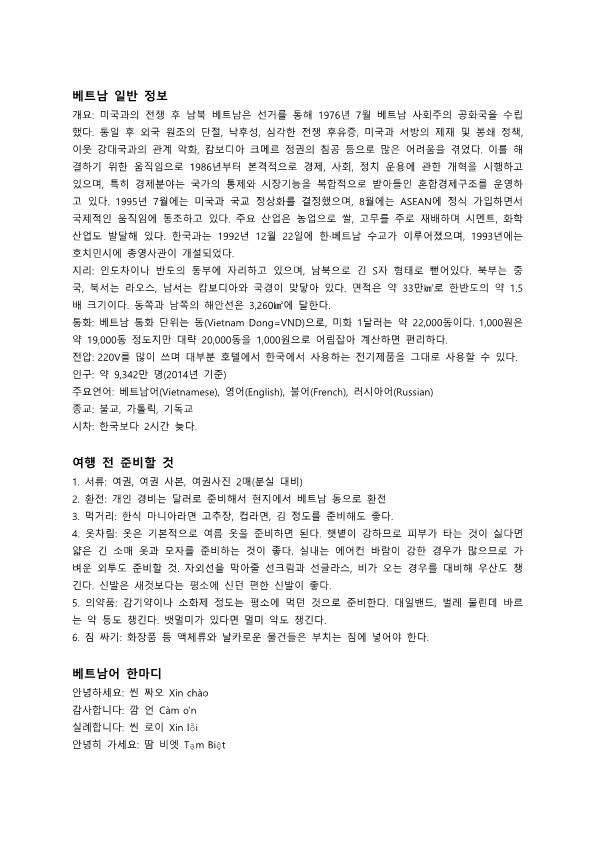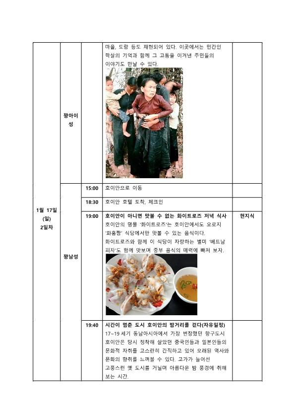 2016년 1월16일부터 1월20일까지 아시아의친구들에서 주관한 베트남평화기행 일정표