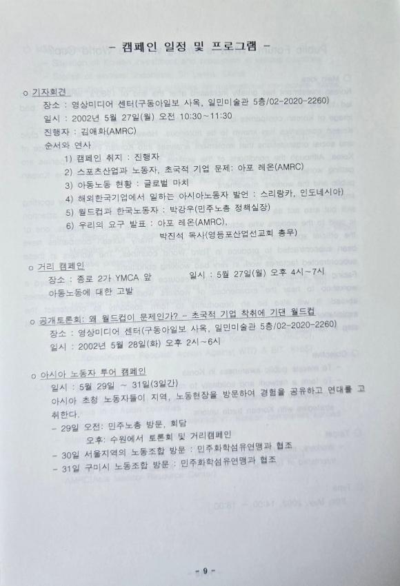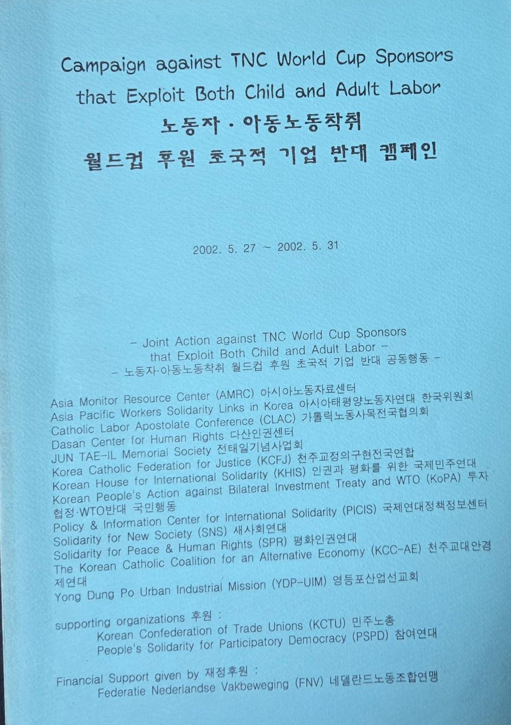 월드컵 후원 초국적 기업의 제3세계 노동자 착취를 폭로하고, 아시아 노동자들의 연대를 위한 "월드컵 캠페인" 참여를 위한 일정 및 자료집이다