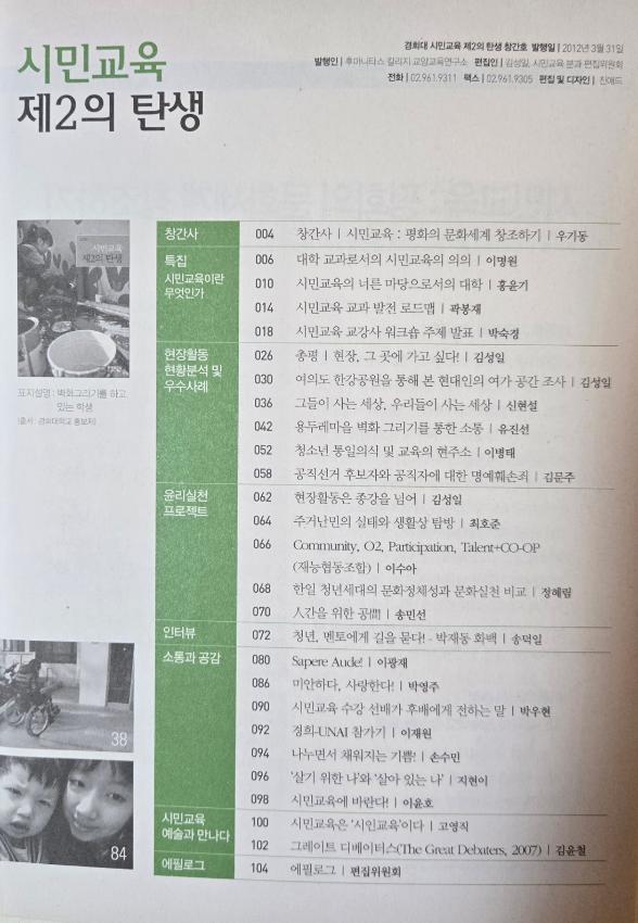 경희대학교 후마니타스 시민교육 저널 창간호이다