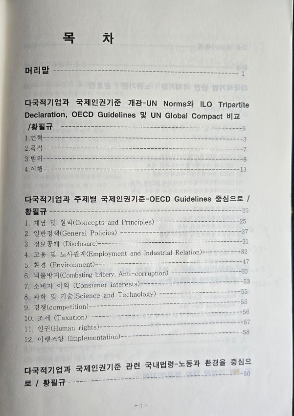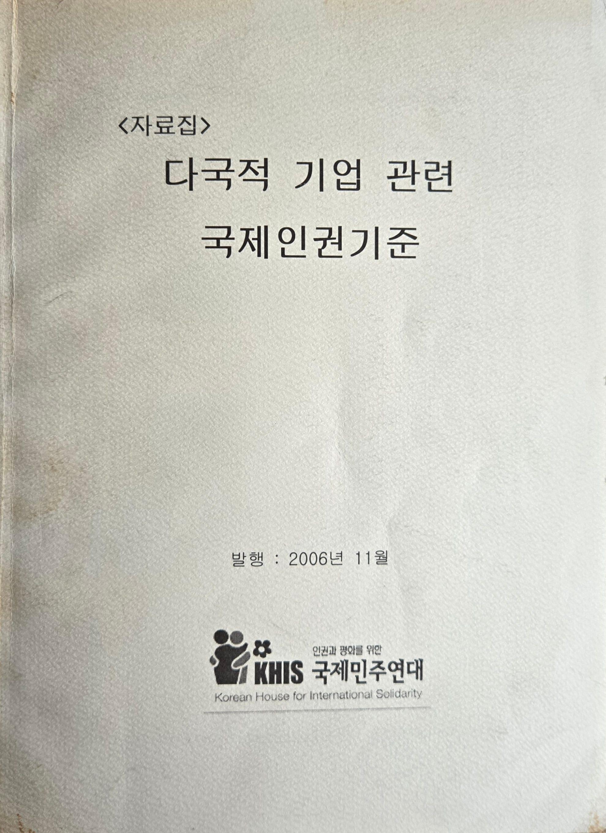 다국적 기업과 관련된 국제인권기준을 정리해 국내에 소개하고, 한국정부와 기업들의 이행실태를 알아보는 토론회의 자료집이다