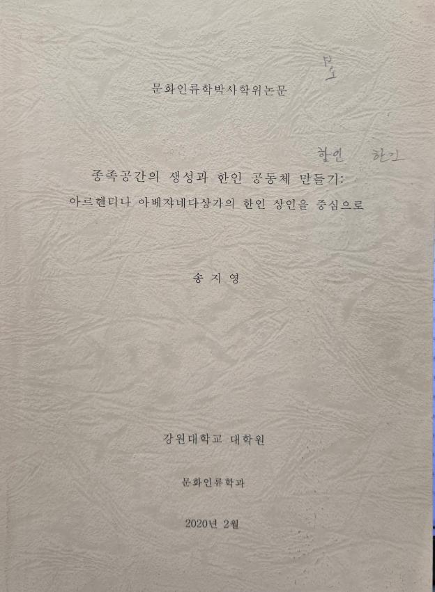 강원대학교 문화인류학 송지영의 박사학위논문이다
