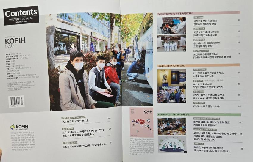 국제협력 증진과 인도주의 실현에 기여하고자 설립된 정부출현 기관인 한국국제 의료재단에서 2020년 펴낸 Vol.55 소식지이다