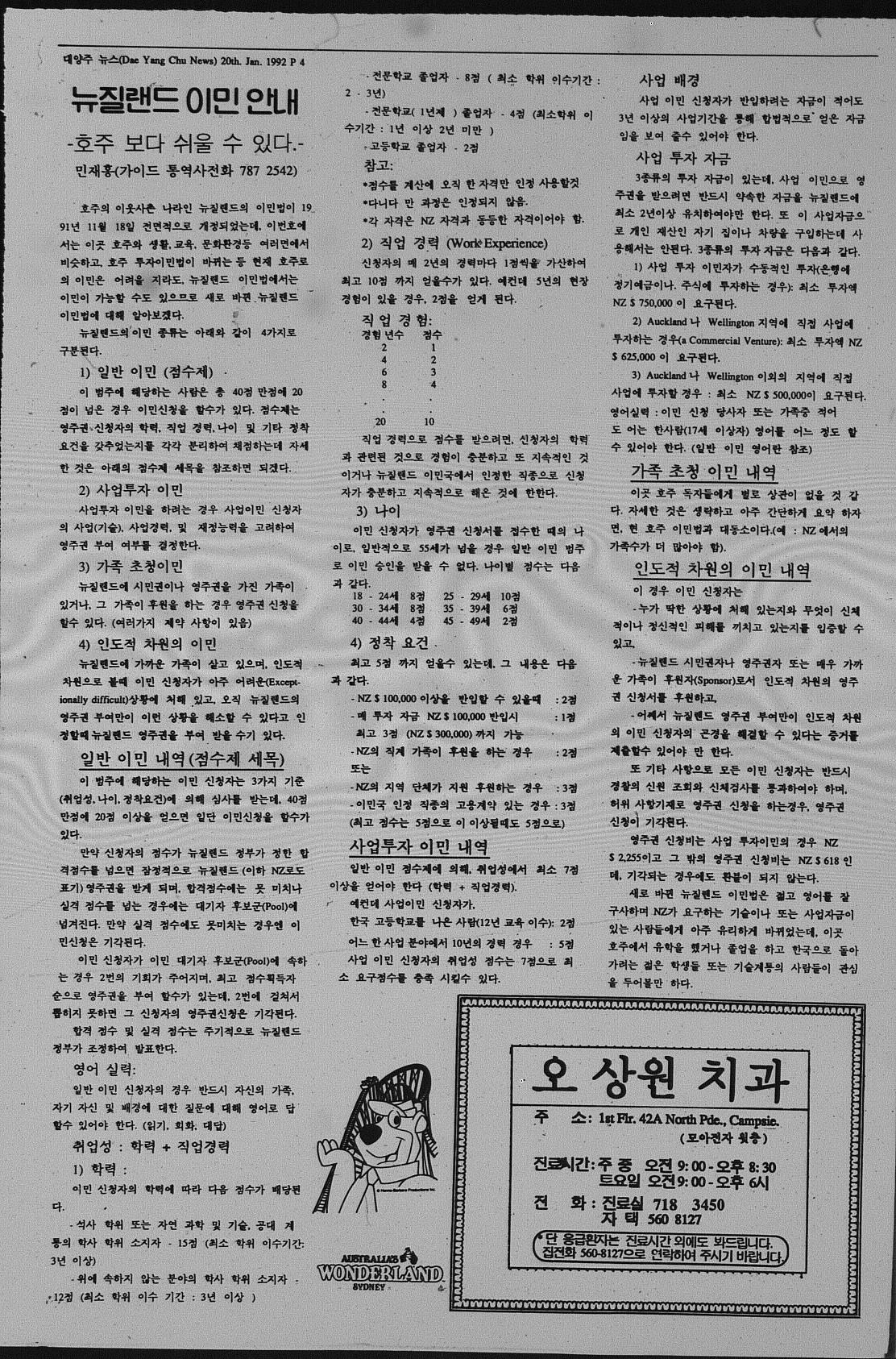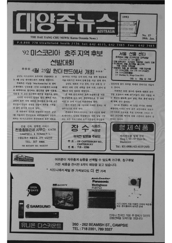 호주에서 제작된 호주에서 제작된 대양주뉴스 No 51은 1991년 6월 28일 발행되었다. 사설- 코리아 마피아, 논단 - 지구인협회회장과 교민회장, 90/91 세금정산 안내, 교민사업 광고들, 각종의 구인광고들이 소개되었다. 광고에는 각종의 현지 블루칼라 노동자 구인광고가 많은 걸로 봐서, 종이 신문이 벼룩시장 역할도 하였음을 알 수 있다.
