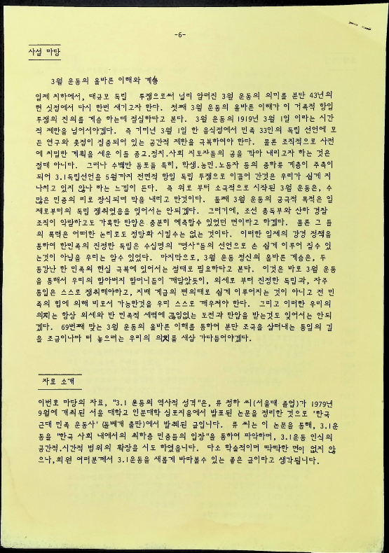 1988년 한국민족자료실(KRC)에서 낸 문화 교육통신 제 7호이다 이달의 시, 소식마당, 도서소개, 신간도서, 도막마당 - 언론노조 반대성명 - 국회의원 선거법 민정 5분만에 단독 통과, 사설마당 - 3월 운동의 올바른 이해와 계승 등을 담고 있다