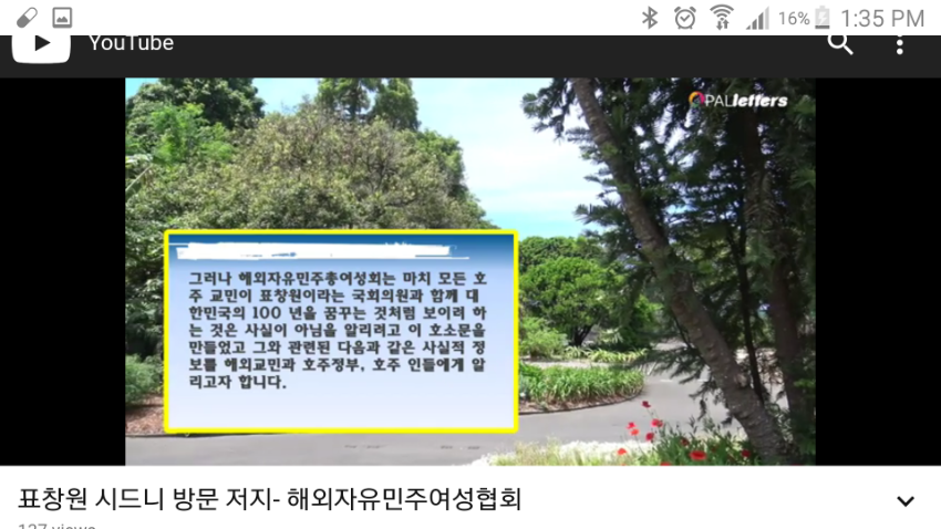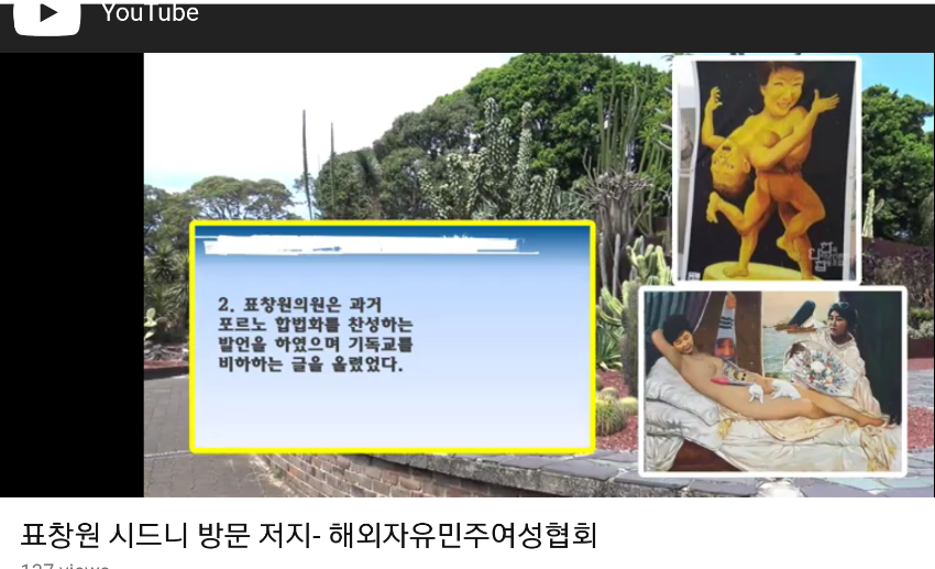 2019년 2월 2일 호주 스트라스필드에서 호주민주연합이 주최한 '호주동포와 꿈꾸는 대한민국 100년'이라는 행사에 북콘서트를 하는 표창원 더불어민주당 의원의 방문을 저지하기 위한 해외자유민주여성협회의 글이다