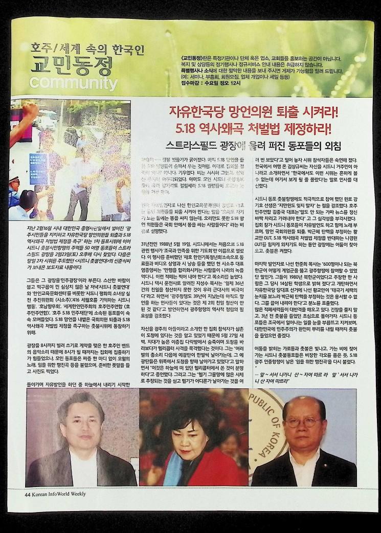 호주,2019,한민족자료실,호주일요신문,518망언 규탄