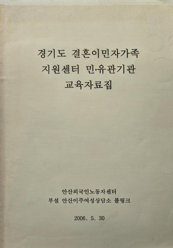 2006년 안산외국인노동자센터 부설 안산이주여성상담소 블링크에서 펴낸 자료집으로 다문화 가족에 대한 이해와 상담, 결혼이민자 가족과 자녀 양육에 관한 내용, 파키스탄커플 모임을 중심으로 본 결혼 이민자 가족 당사자가 말하는 한국사회에서의 다문화 가족 등을 싣고 있다