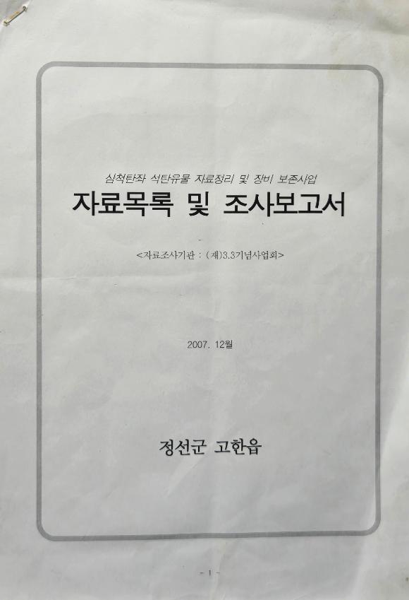 (재) 3·3기념사업회에서 조사한 정선군 고한읍에 있는 삼척탄좌 정암광업소에 대한 보고서이다. 본관내에 산재해 있는 자료와 유물들을 수집, 정리하고 목록화하여 지역역사와 석탄산업사를 연구하기 위한 기본토대를 구축하기위해 이루어진 사업이다