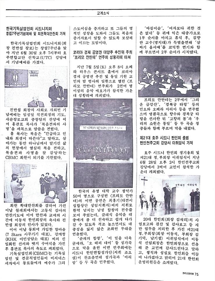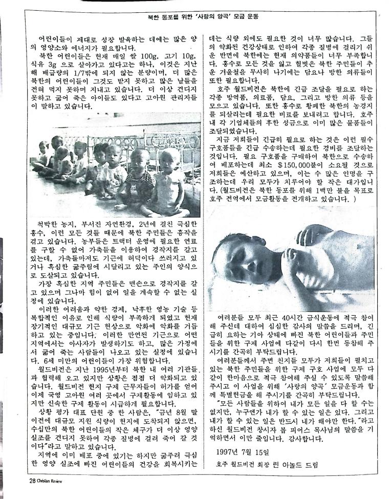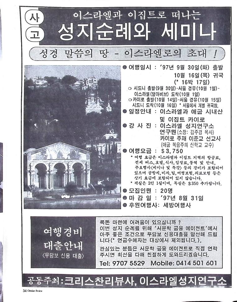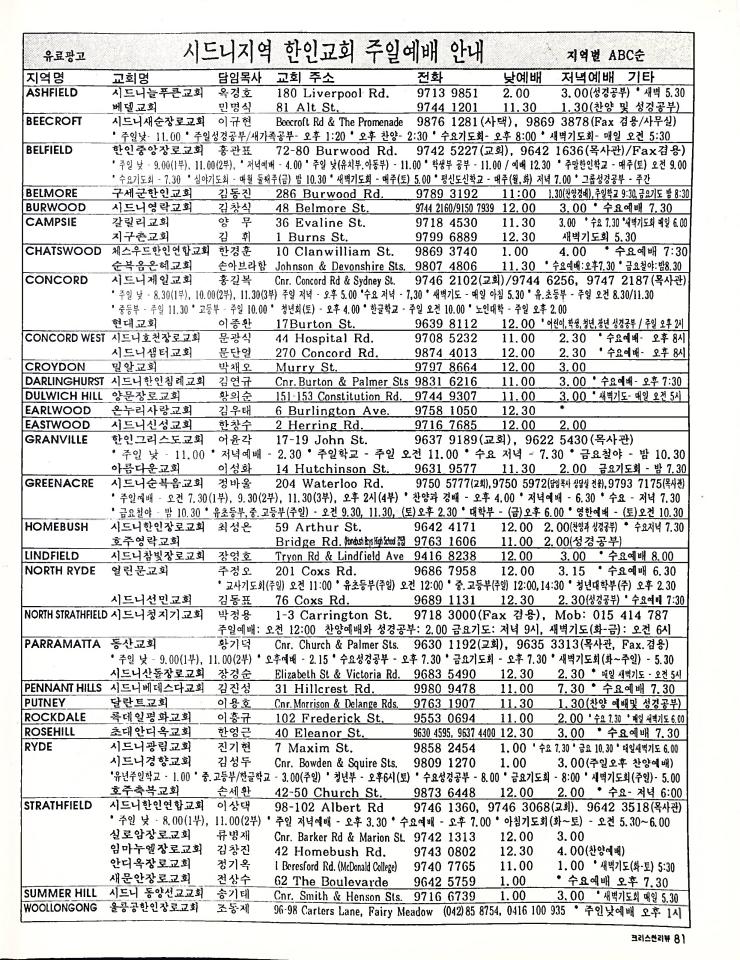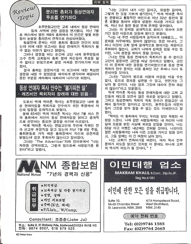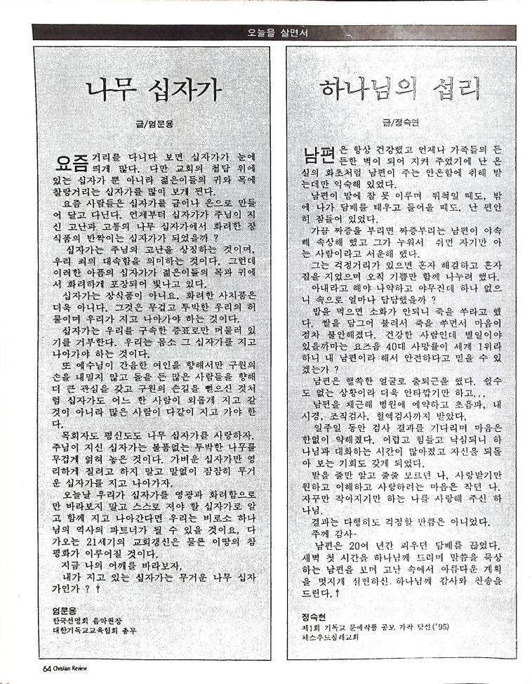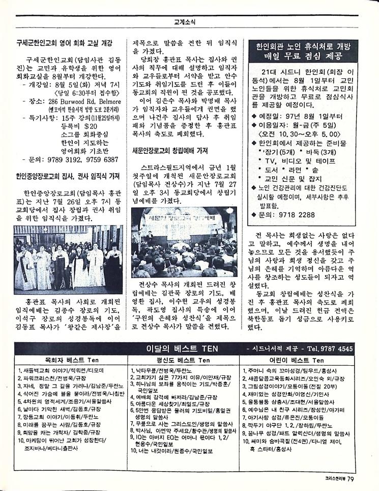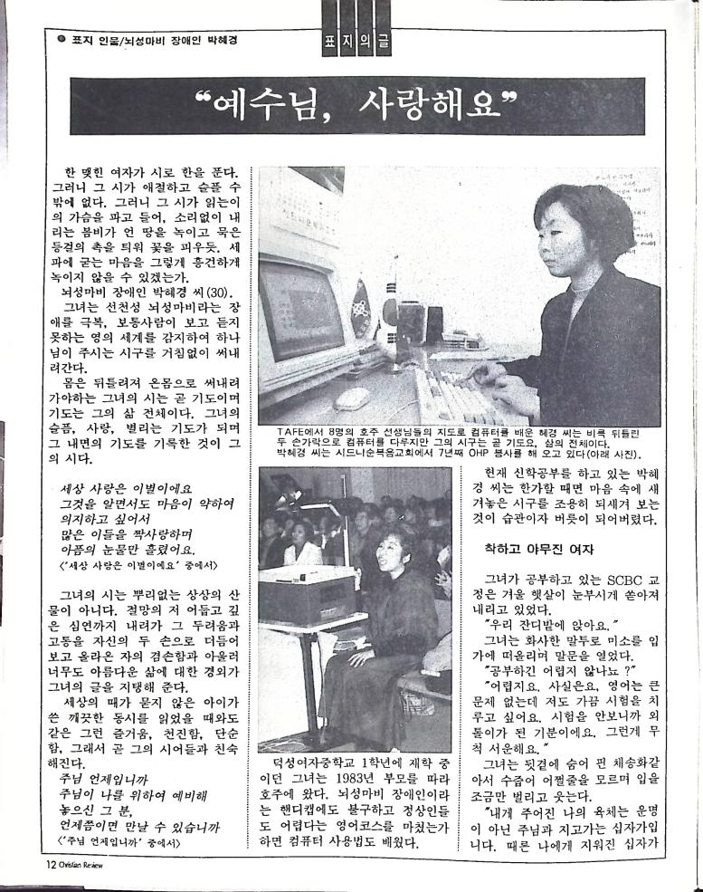 호주에서 1990년 1월부터 제작된 크리스찬 리뷰는 굳건한 신앙의 터전위에 교파를 초월한 신앙공동체로서 복음을 널리 전하기 위한 선교의 목적을 갖고 창간되었다. 아름다운 세상찾기-굶어서 죽어가는데... / 왜, 미국엄마들은 북과 장구를 잡아야만 했는가? / 북한 동포를 위한 '사랑의 양곡' 모금 운동 / UCA 제8차 총회 참관기