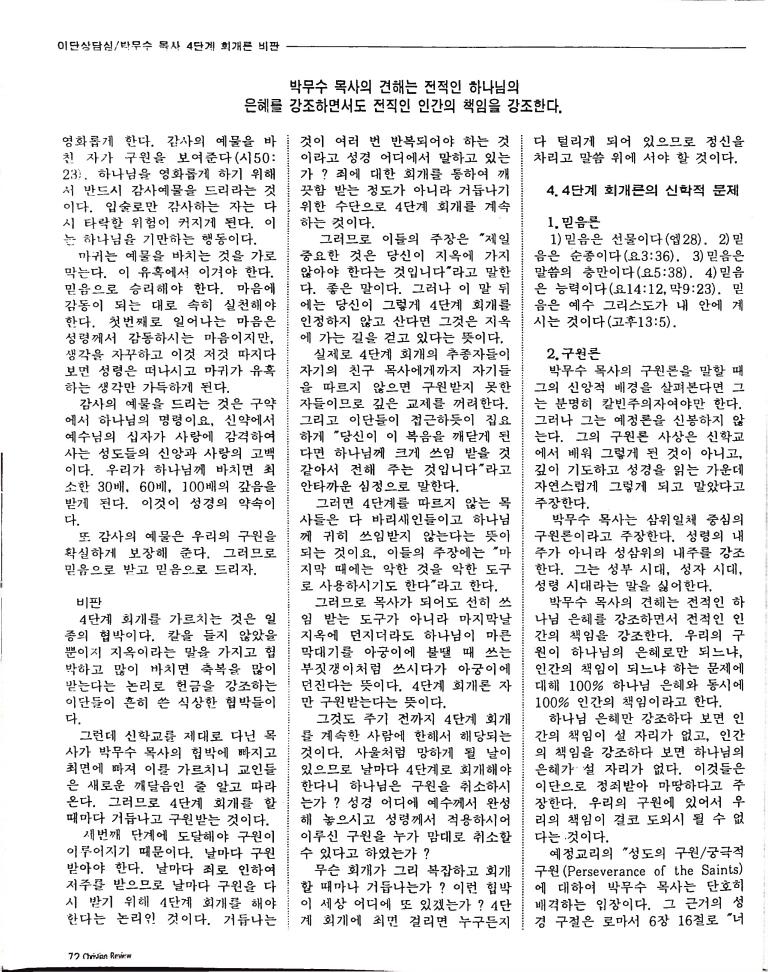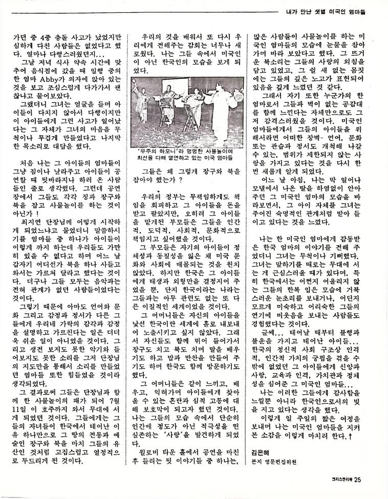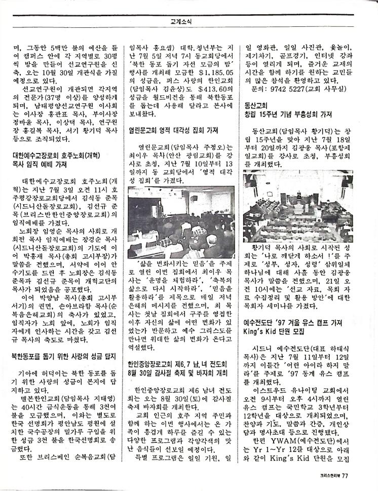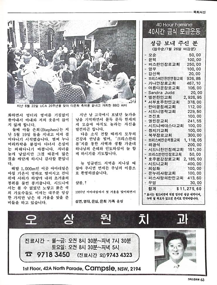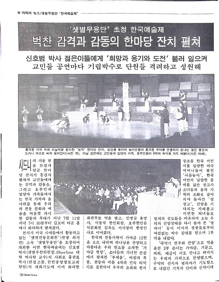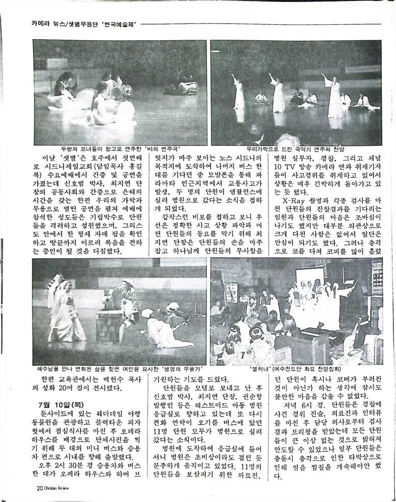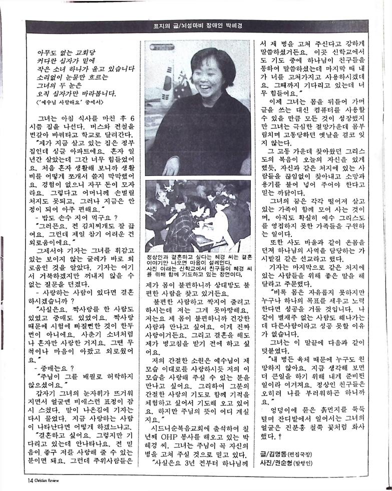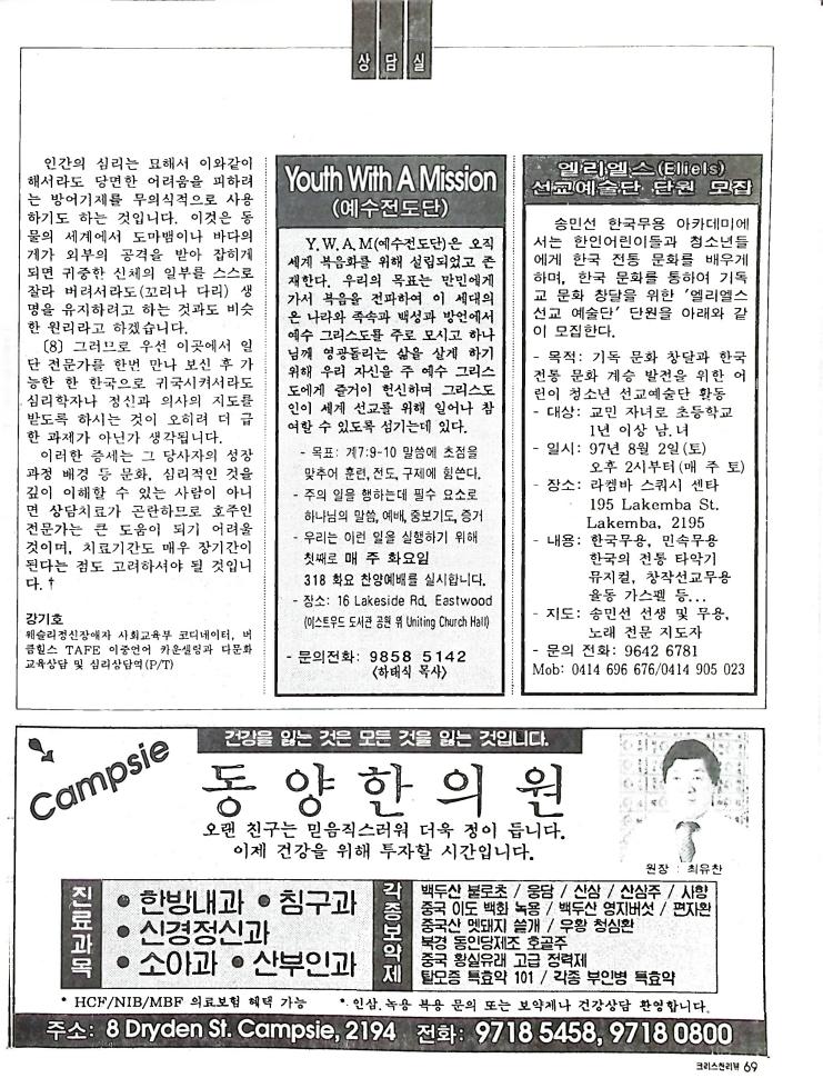 호주에서 1990년 1월부터 제작된 크리스찬 리뷰는 굳건한 신앙의 터전위에 교파를 초월한 신앙공동체로서 복음을 널리 전하기 위한 선교의 목적을 갖고 창간되었다. 아름다운 세상찾기-굶어서 죽어가는데... / 왜, 미국엄마들은 북과 장구를 잡아야만 했는가? / 북한 동포를 위한 '사랑의 양곡' 모금 운동 / UCA 제8차 총회 참관기