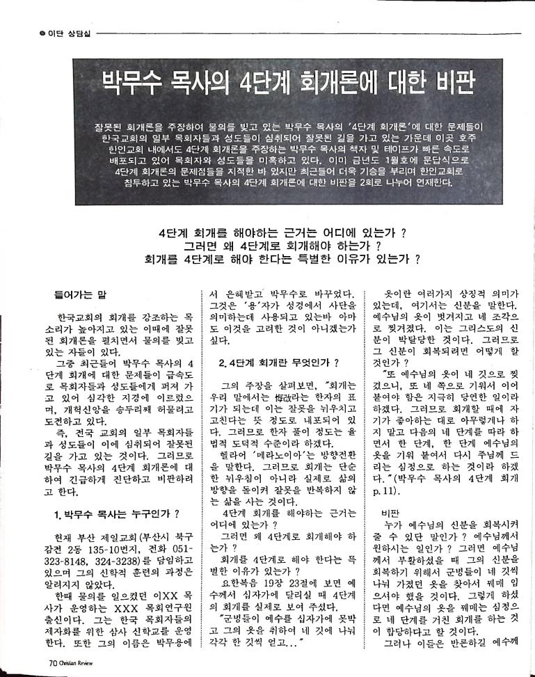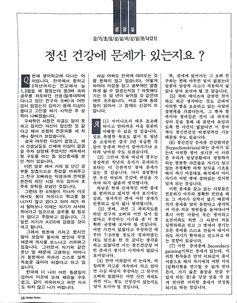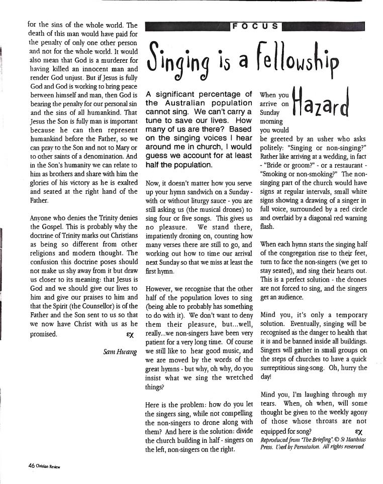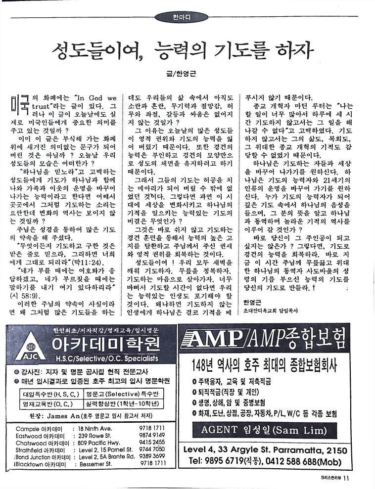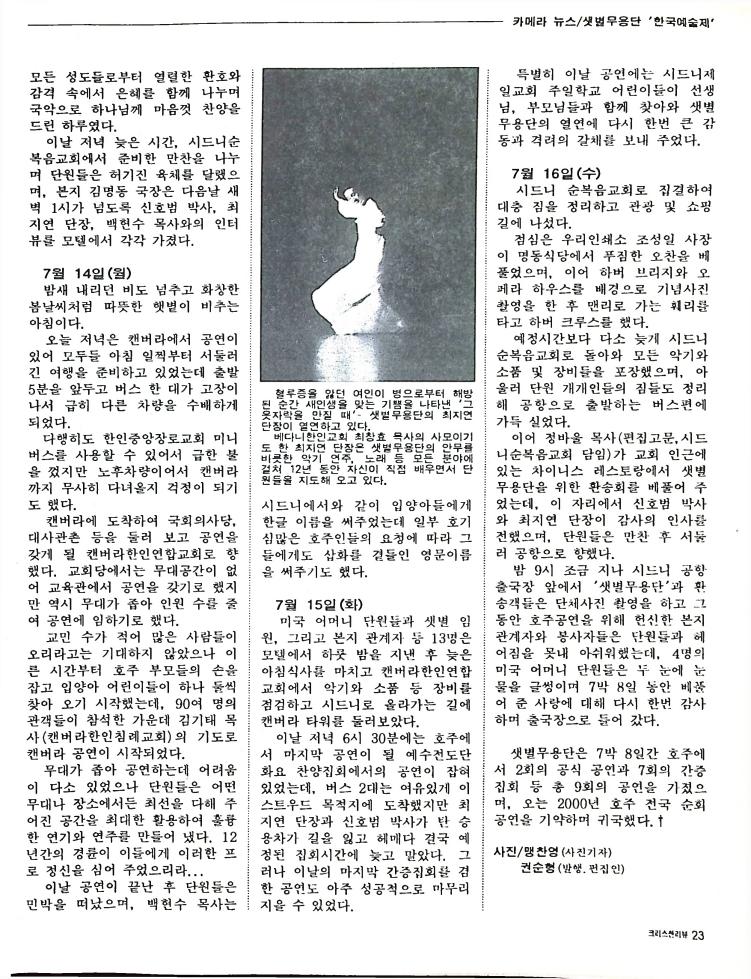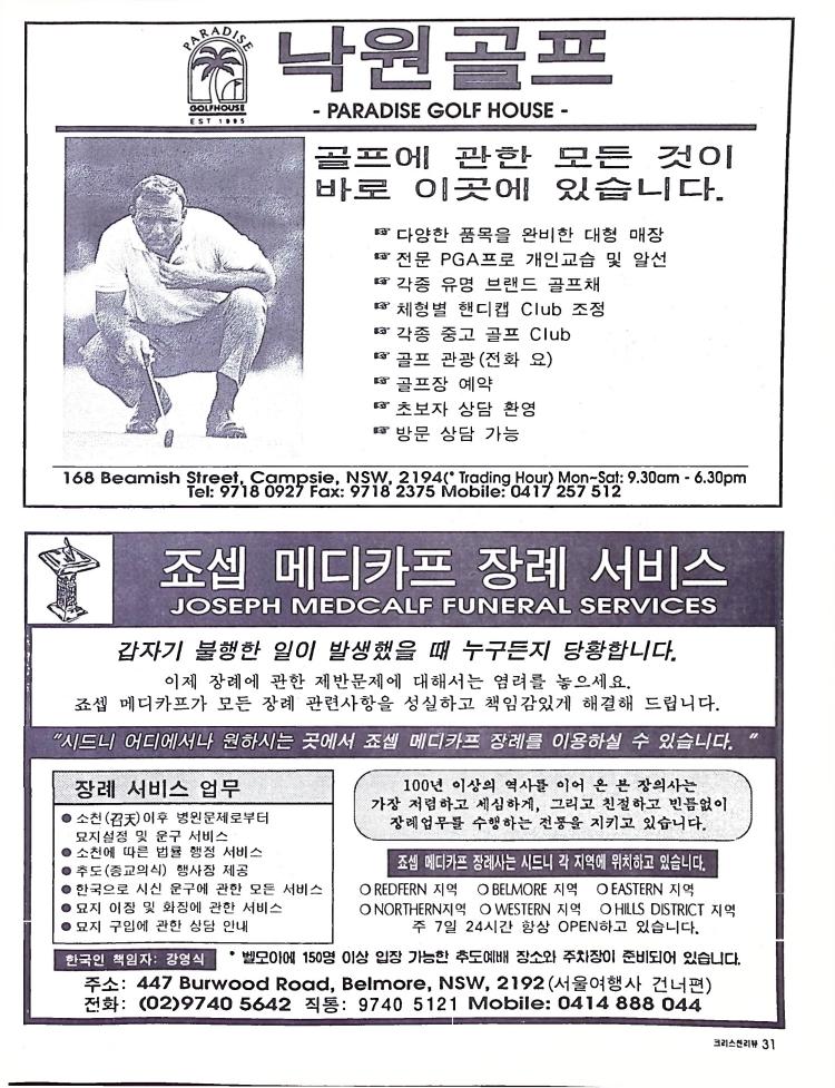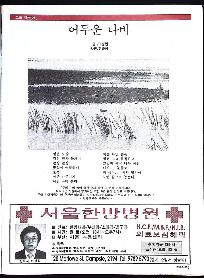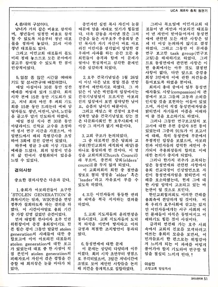 호주에서 1990년 1월부터 제작된 크리스찬 리뷰는 굳건한 신앙의 터전위에 교파를 초월한 신앙공동체로서 복음을 널리 전하기 위한 선교의 목적을 갖고 창간되었다. 아름다운 세상찾기-굶어서 죽어가는데... / 왜, 미국엄마들은 북과 장구를 잡아야만 했는가? / 북한 동포를 위한 '사랑의 양곡' 모금 운동 / UCA 제8차 총회 참관기