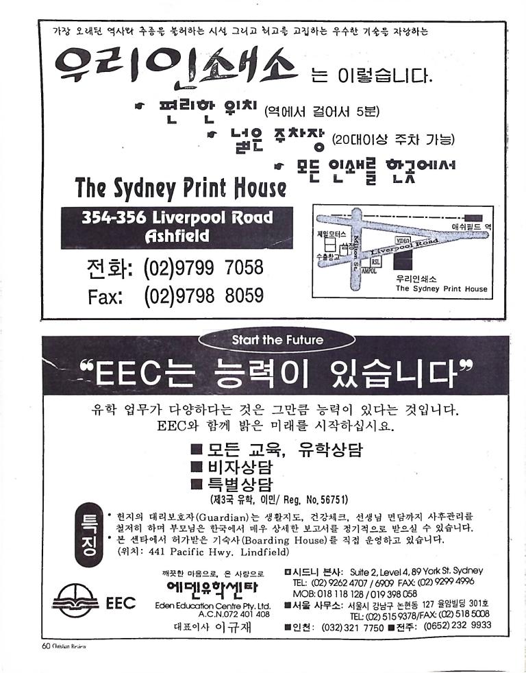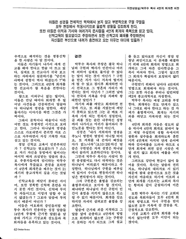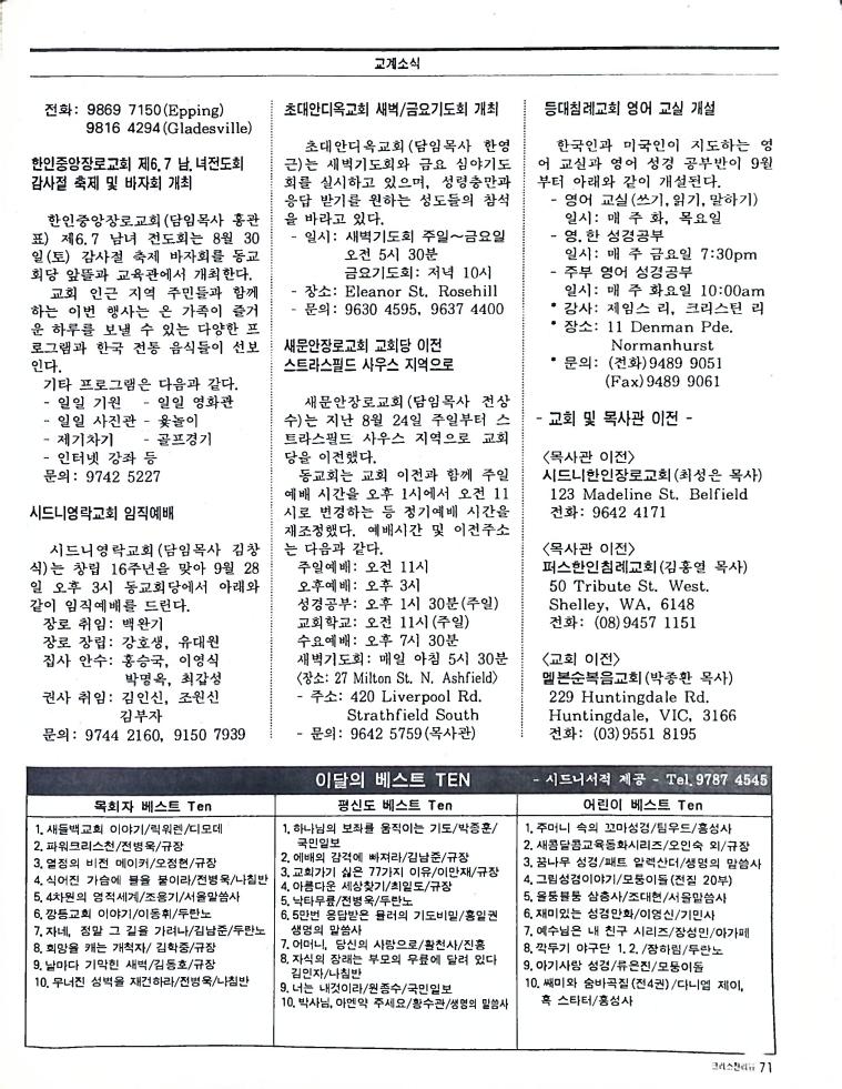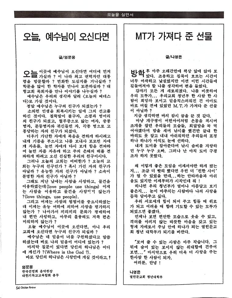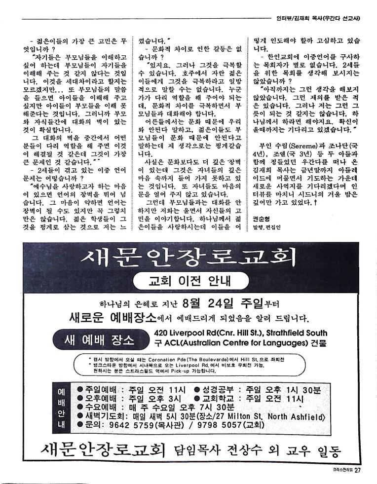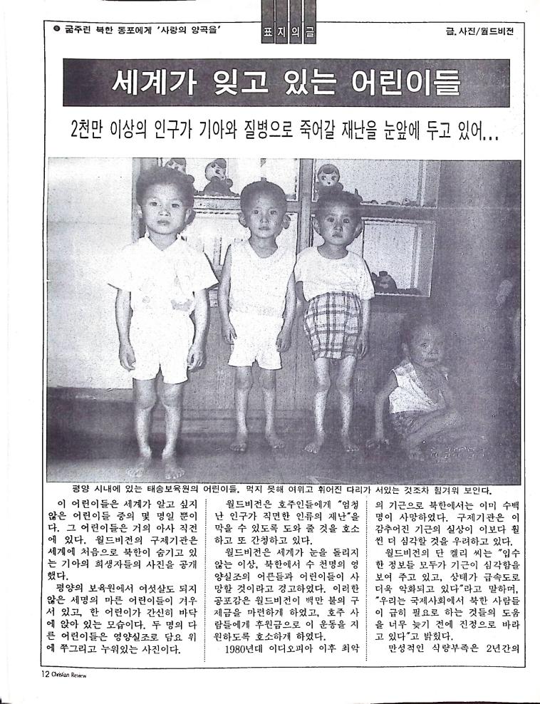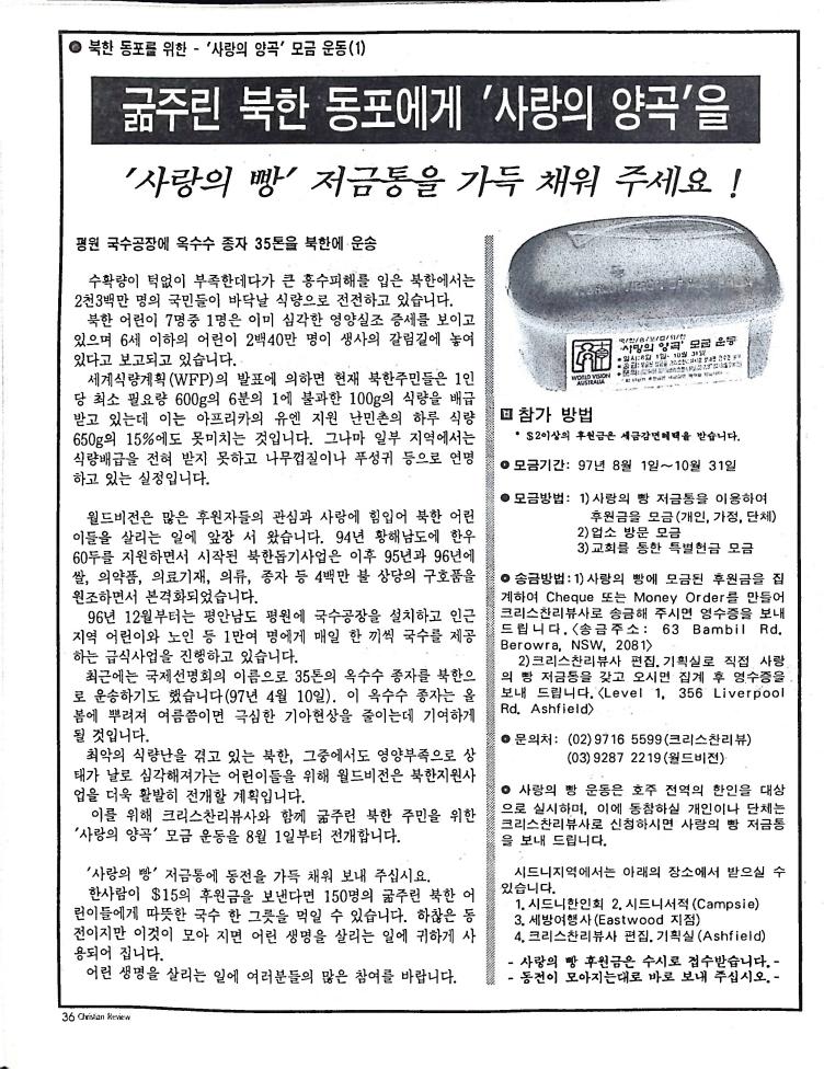 호주에서 1990년 1월부터 제작된 크리스찬 리뷰는 굳건한 신앙의 터전위에 교파를 초월한 신앙공동체로서 복음을 널리 전하기 위한 선교의 목적을 갖고 창간되었다. '무지개집' 북한동포 돕기 / 오늘을 살면서-오늘, 예수님이 오신다면 / 이단상담실 / 리뷰리포트-평신도협의회 제3차 정기총회