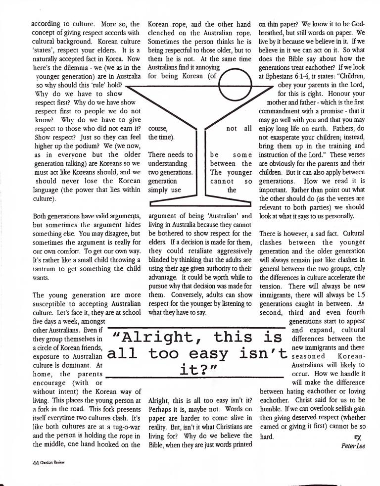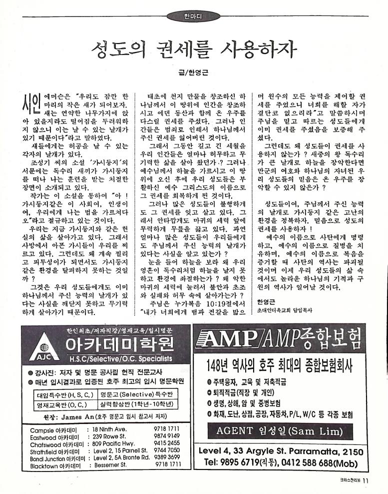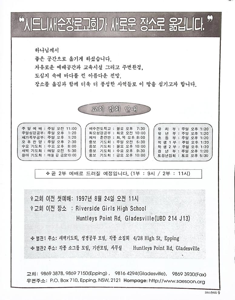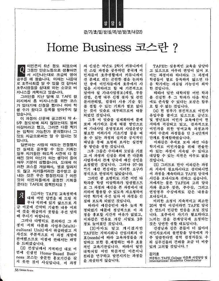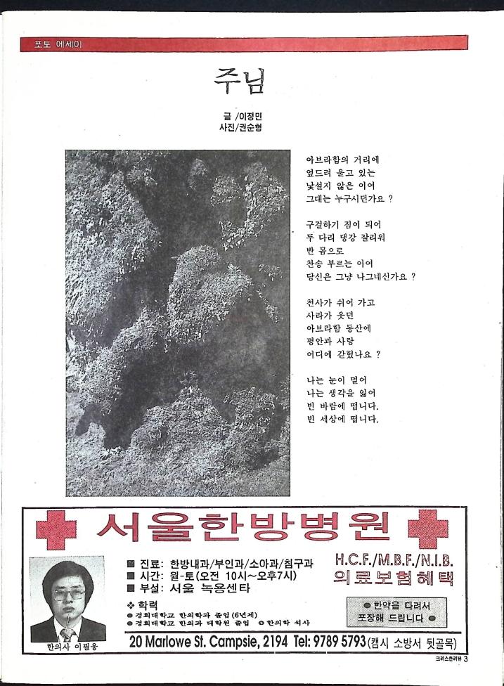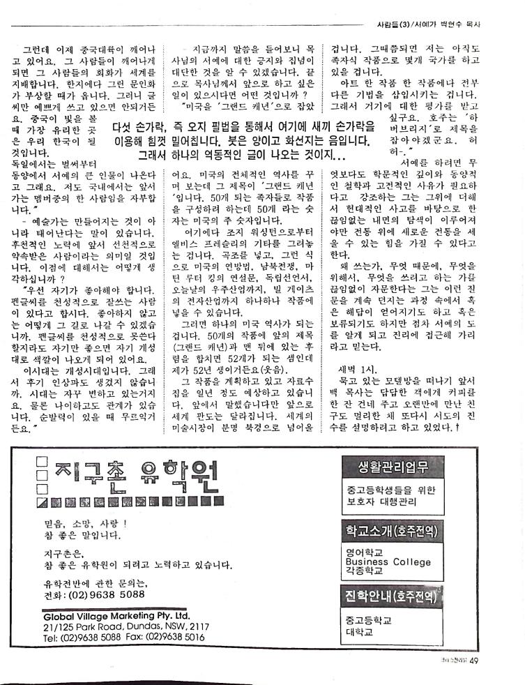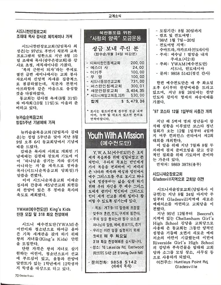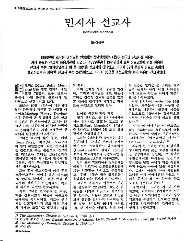 호주에서 1990년 1월부터 제작된 크리스찬 리뷰는 굳건한 신앙의 터전위에 교파를 초월한 신앙공동체로서 복음을 널리 전하기 위한 선교의 목적을 갖고 창간되었다. '무지개집' 북한동포 돕기 / 오늘을 살면서-오늘, 예수님이 오신다면 / 이단상담실 / 리뷰리포트-평신도협의회 제3차 정기총회