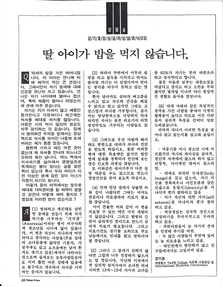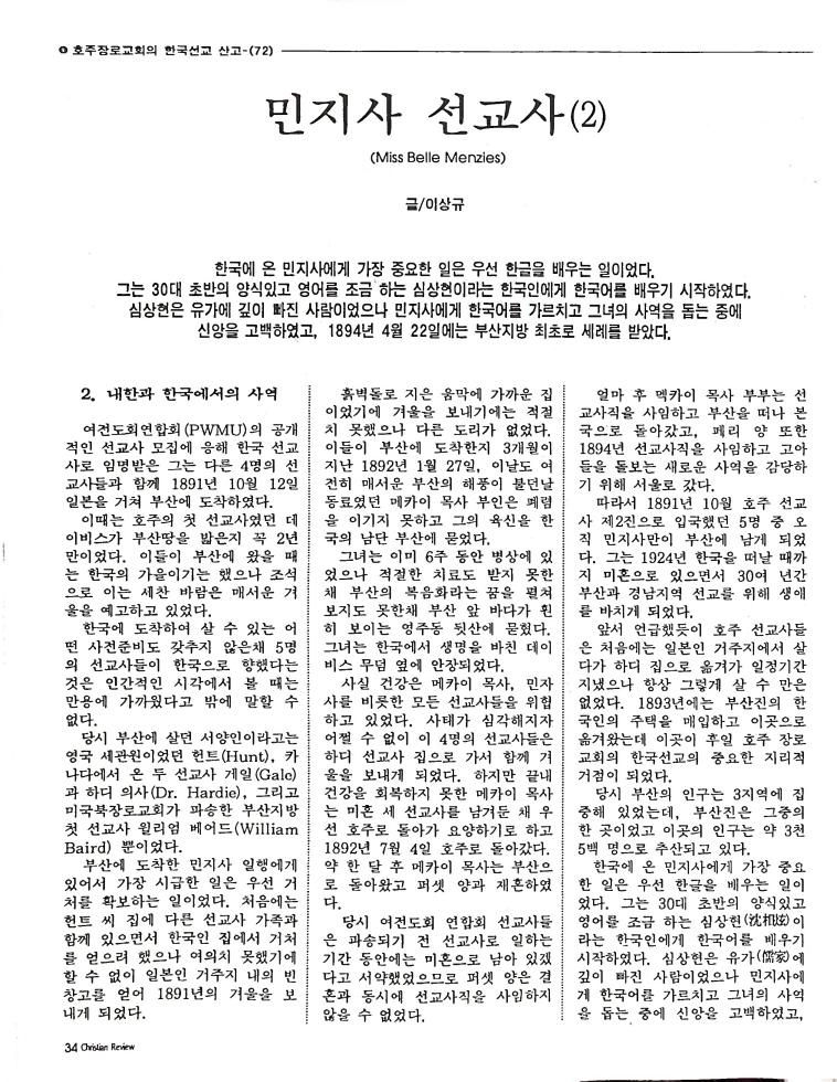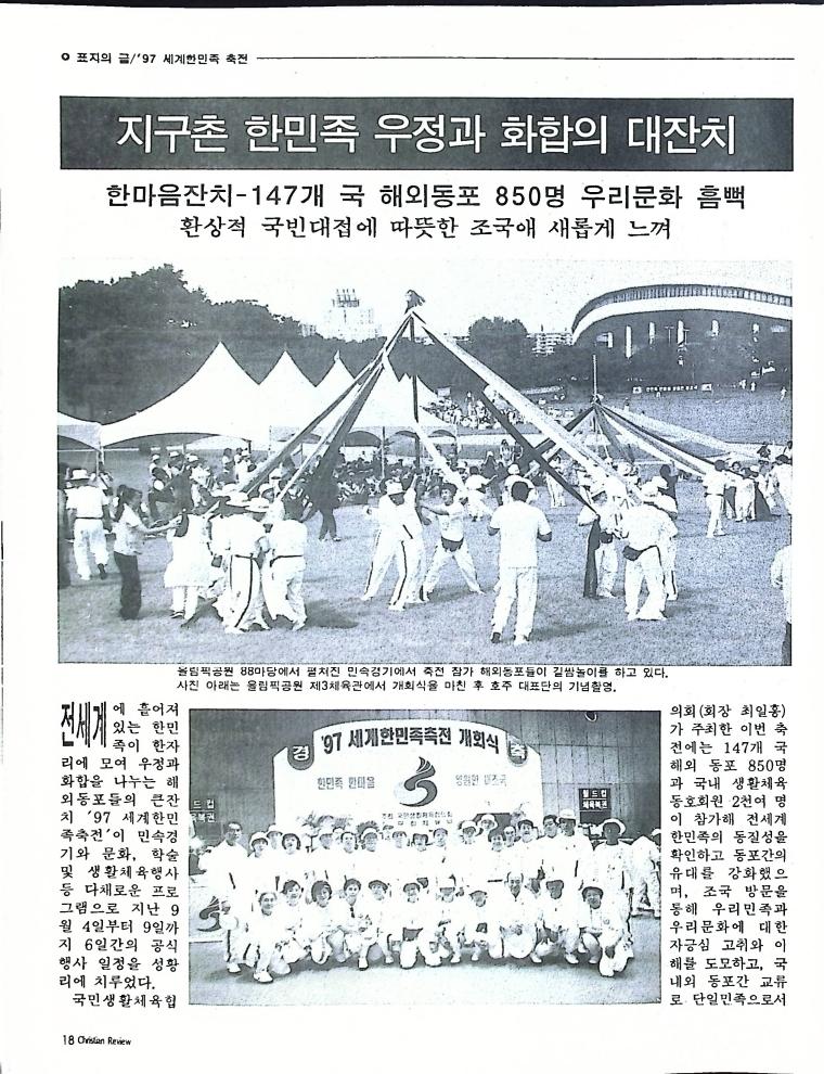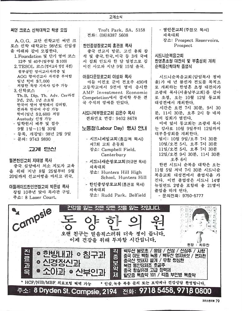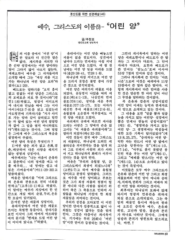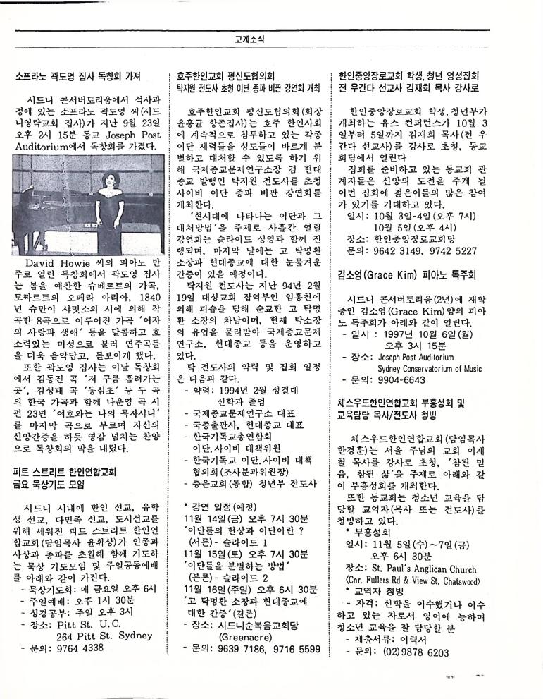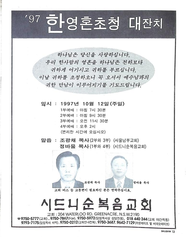 호주에서 1990년 1월부터 제작된 크리스찬 리뷰는 굳건한 신앙의 터전위에 교파를 초월한 신앙공동체로서 복음을 널리 전하기 위한 선교의 목적을 갖고 창간되었다. 리뷰논단-종교개혁의 달을 맞아 / WARC 제23차 총회 참관기 / 탐방-Southern Cross College / 류광수 다락방 어떻게 볼 것인가