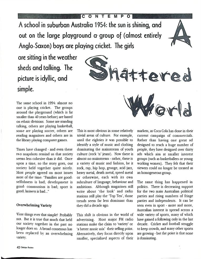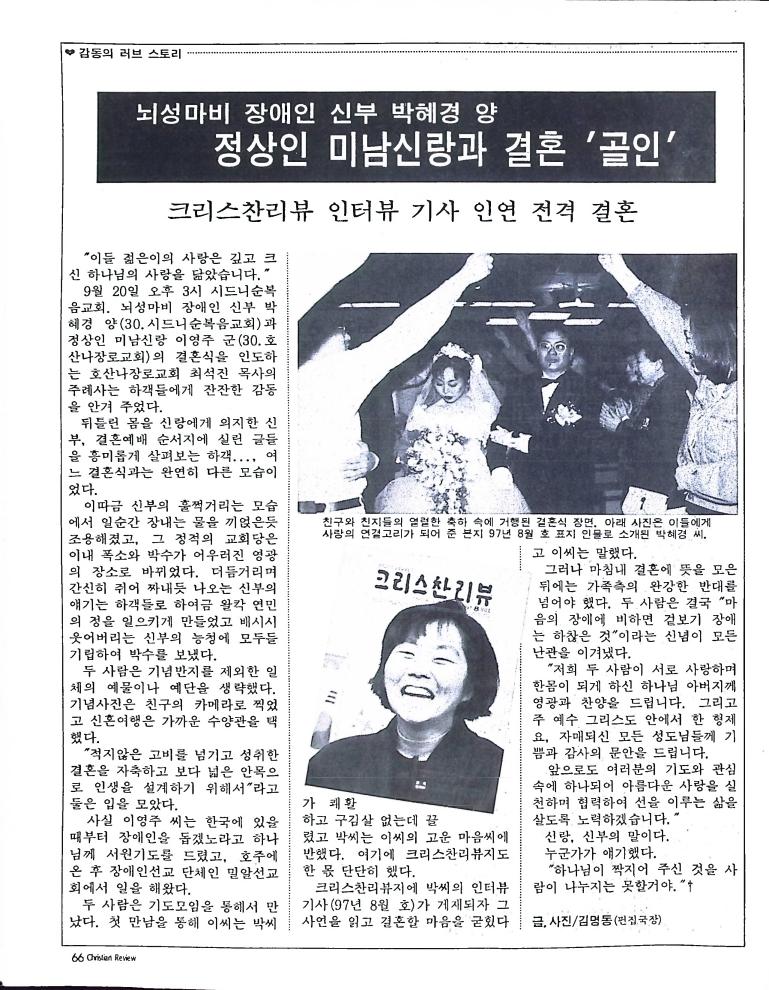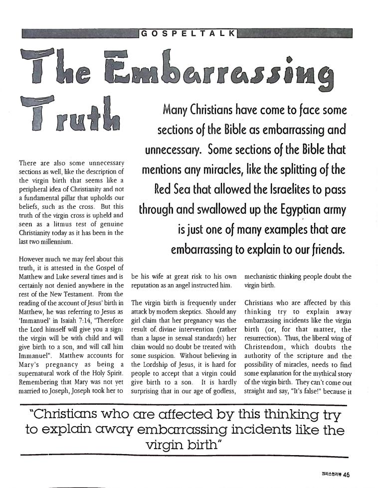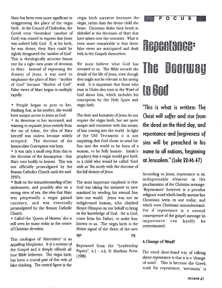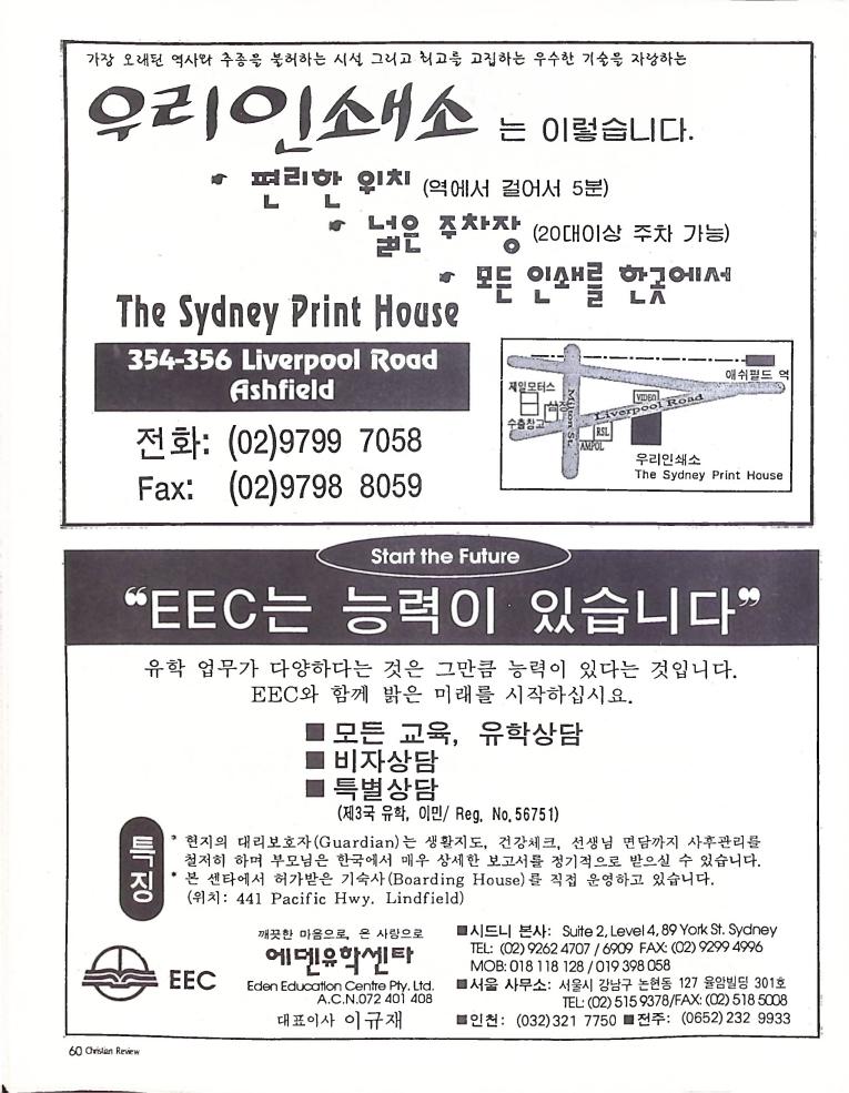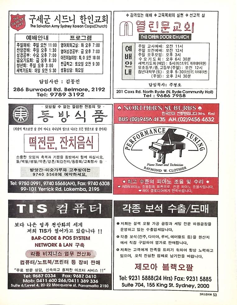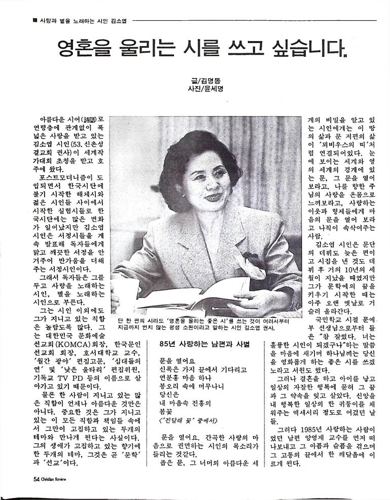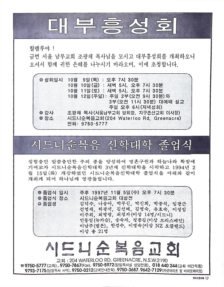 호주에서 1990년 1월부터 제작된 크리스찬 리뷰는 굳건한 신앙의 터전위에 교파를 초월한 신앙공동체로서 복음을 널리 전하기 위한 선교의 목적을 갖고 창간되었다. 리뷰논단-종교개혁의 달을 맞아 / WARC 제23차 총회 참관기 / 탐방-Southern Cross College / 류광수 다락방 어떻게 볼 것인가