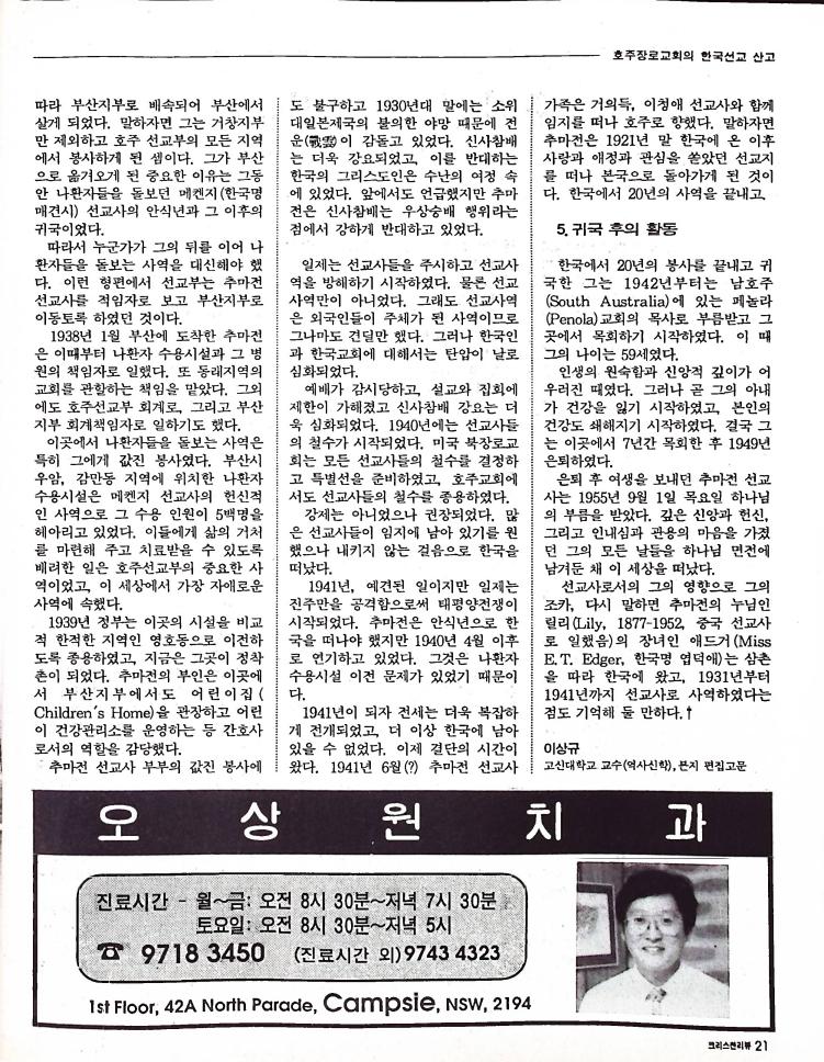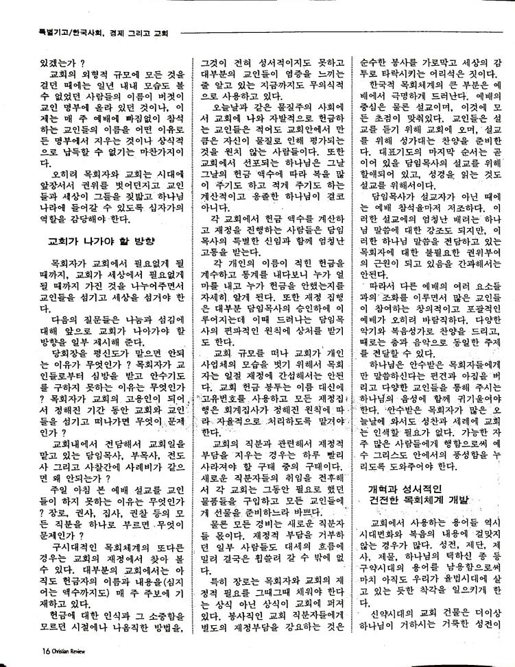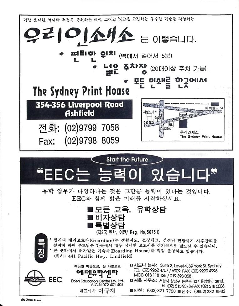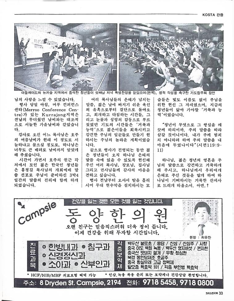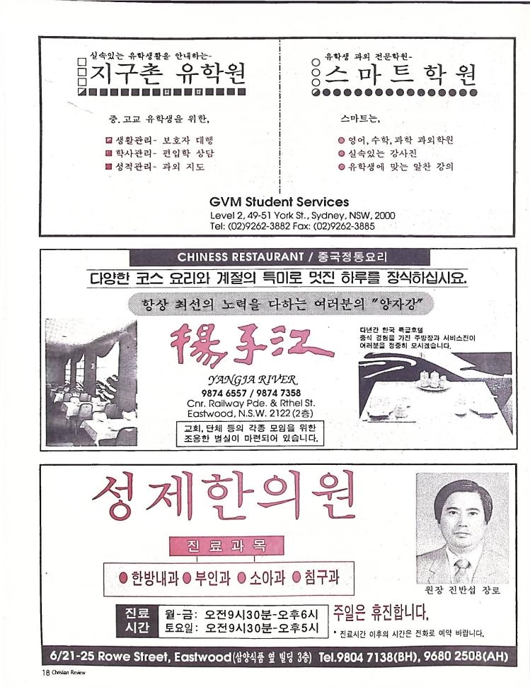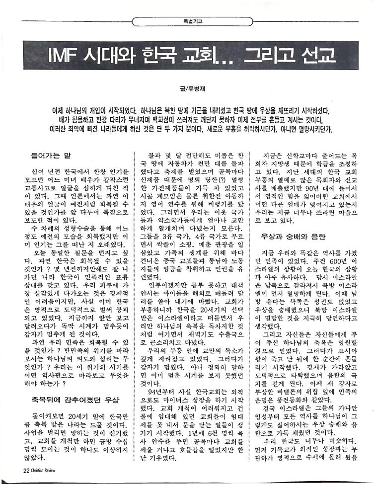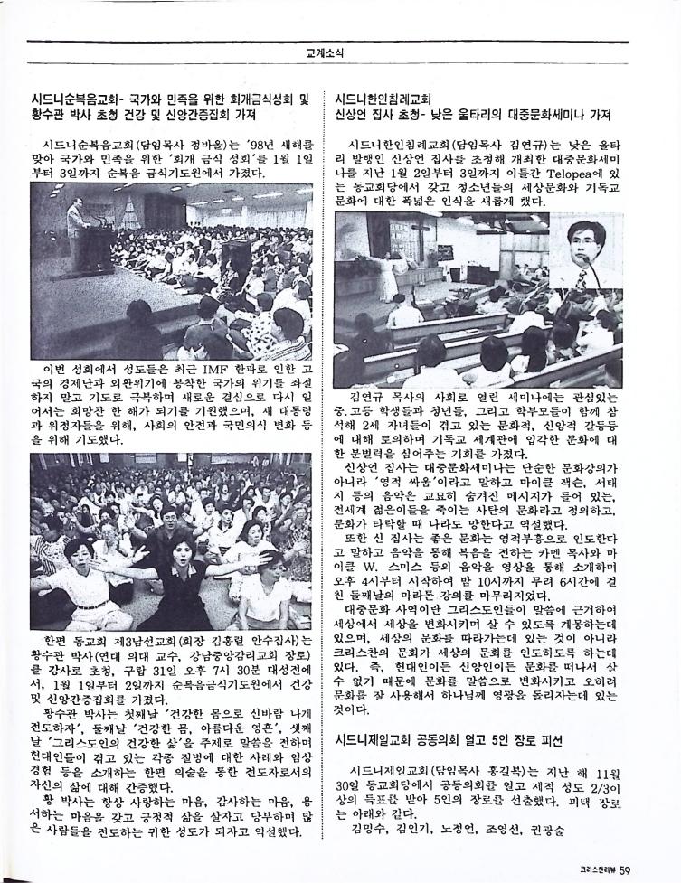 호주에서 1990년 1월부터 제작된 크리스찬 리뷰는 굳건한 신앙의 터전위에 교파를 초월한 신앙공동체로서 복음을 널리 전하기 위한 선교의 목적을 갖고 창간되었다. 특별기고-한국사회, 경제 그리고 교회 / 특별기고-IMF 시대와 한국교회 그리고 선교 / 리뷰논단-현대교회는 어디 있는가? / 카메라뉴스-다문화성가합창제