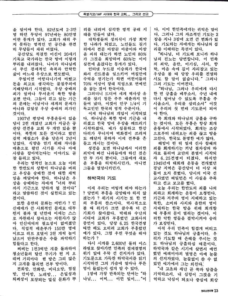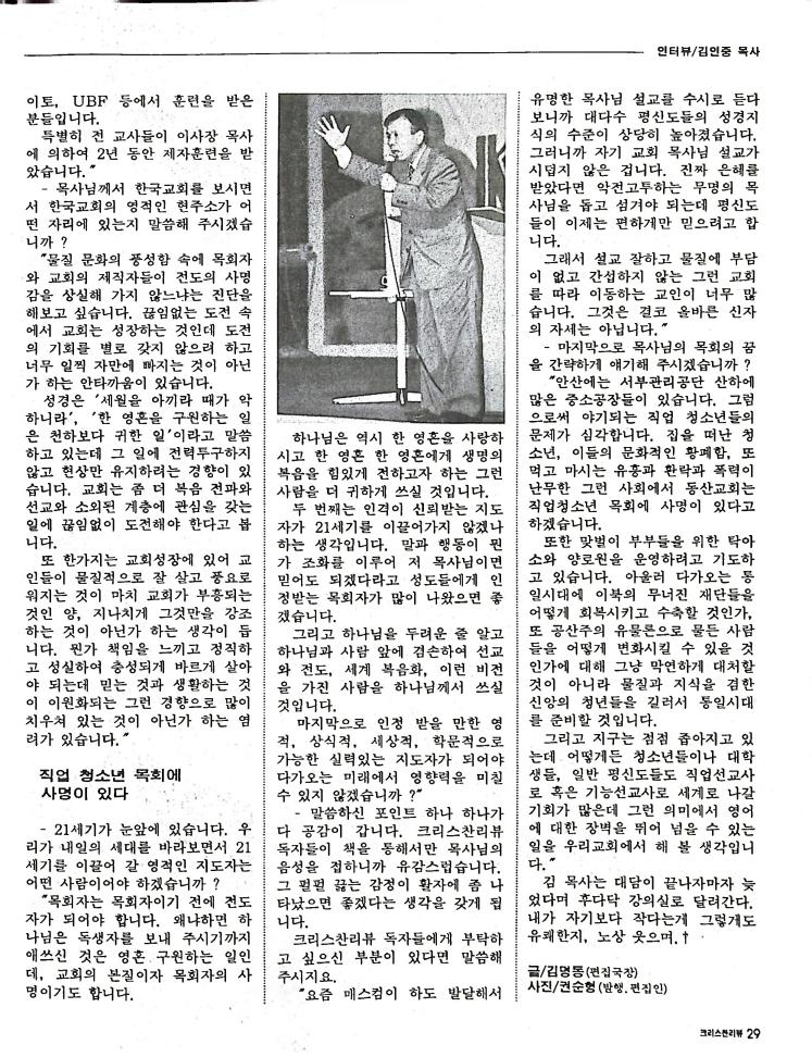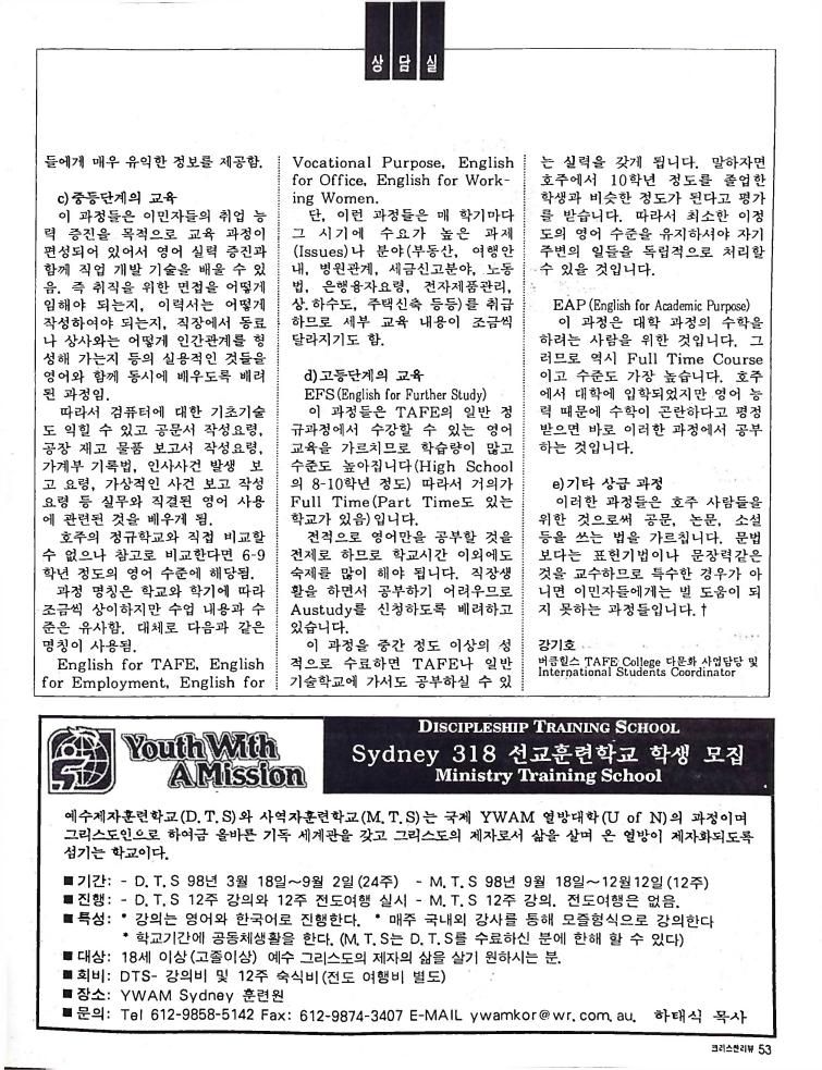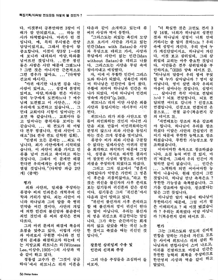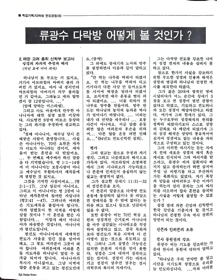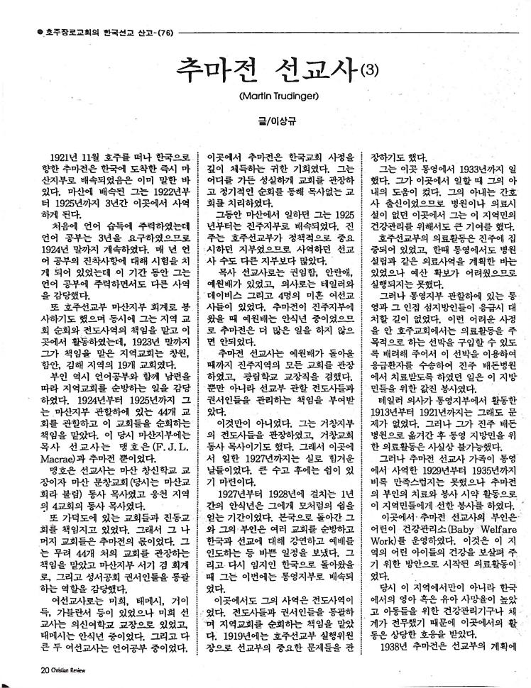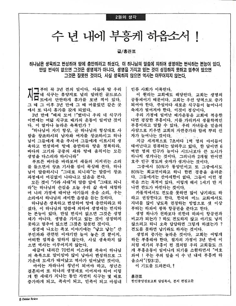 호주에서 1990년 1월부터 제작된 크리스찬 리뷰는 굳건한 신앙의 터전위에 교파를 초월한 신앙공동체로서 복음을 널리 전하기 위한 선교의 목적을 갖고 창간되었다. 특별기고-한국사회, 경제 그리고 교회 / 특별기고-IMF 시대와 한국교회 그리고 선교 / 리뷰논단-현대교회는 어디 있는가? / 카메라뉴스-다문화성가합창제