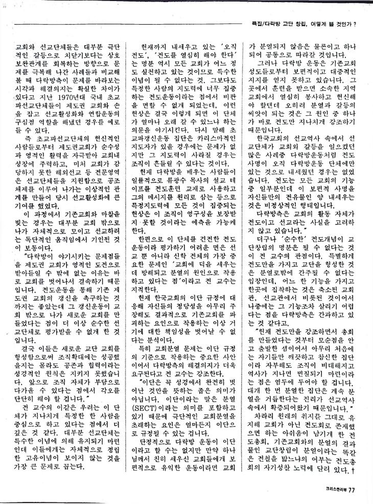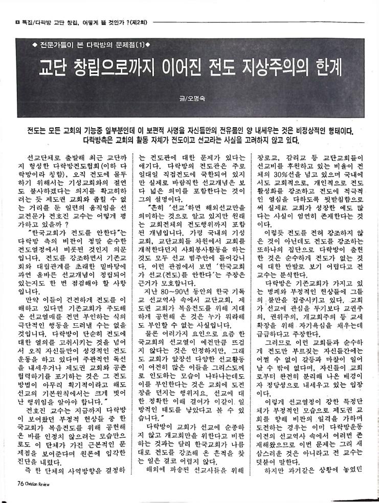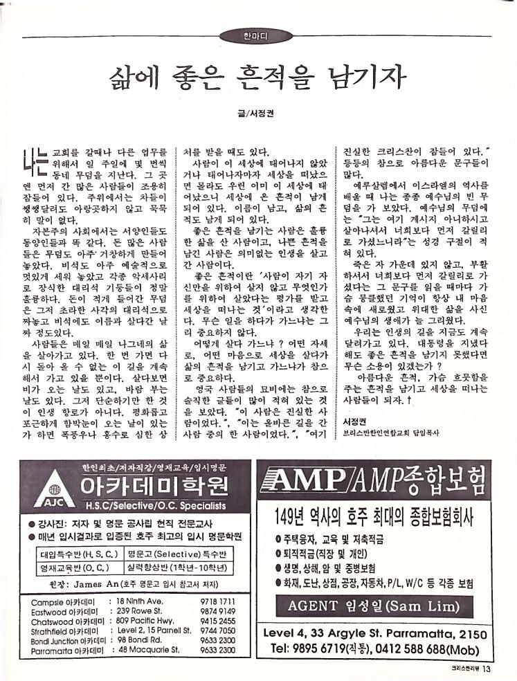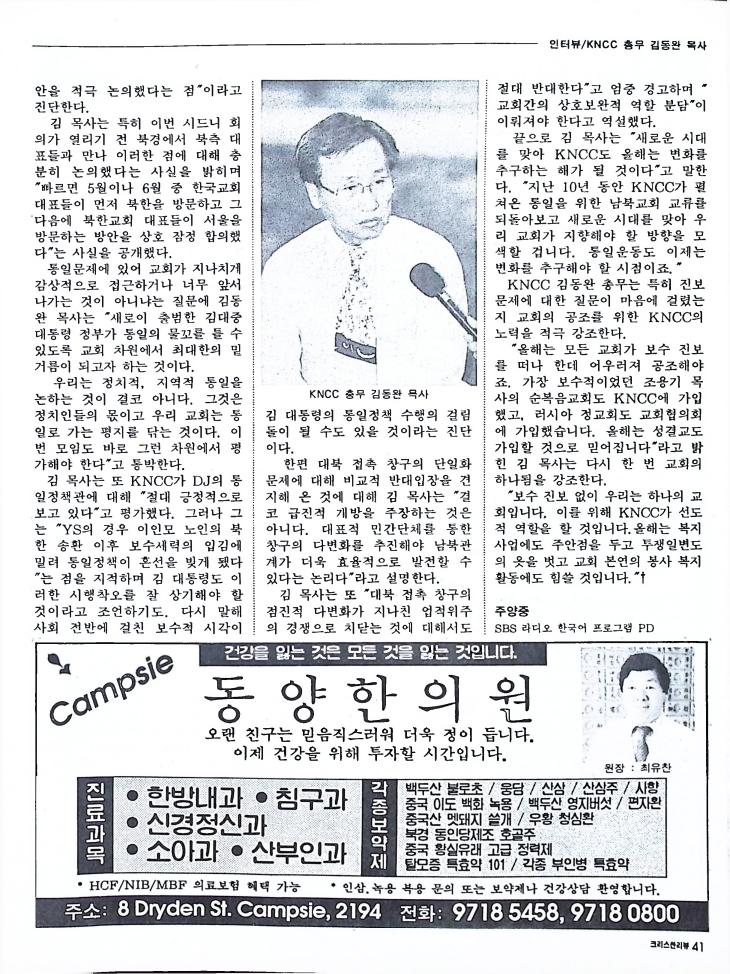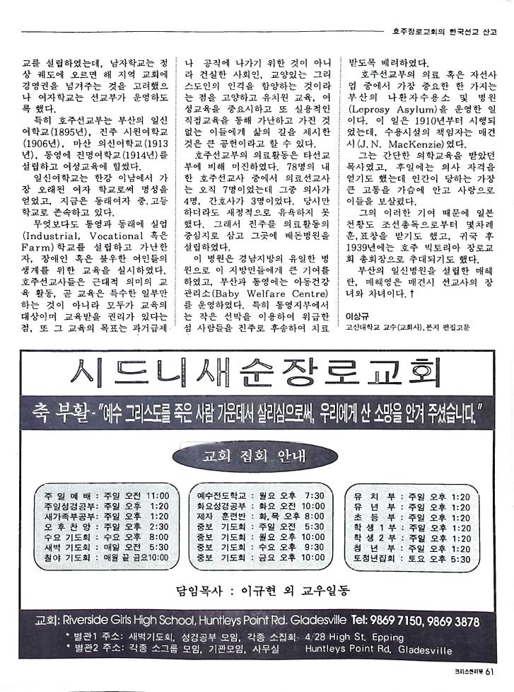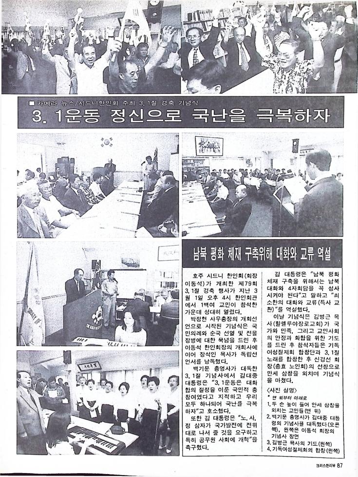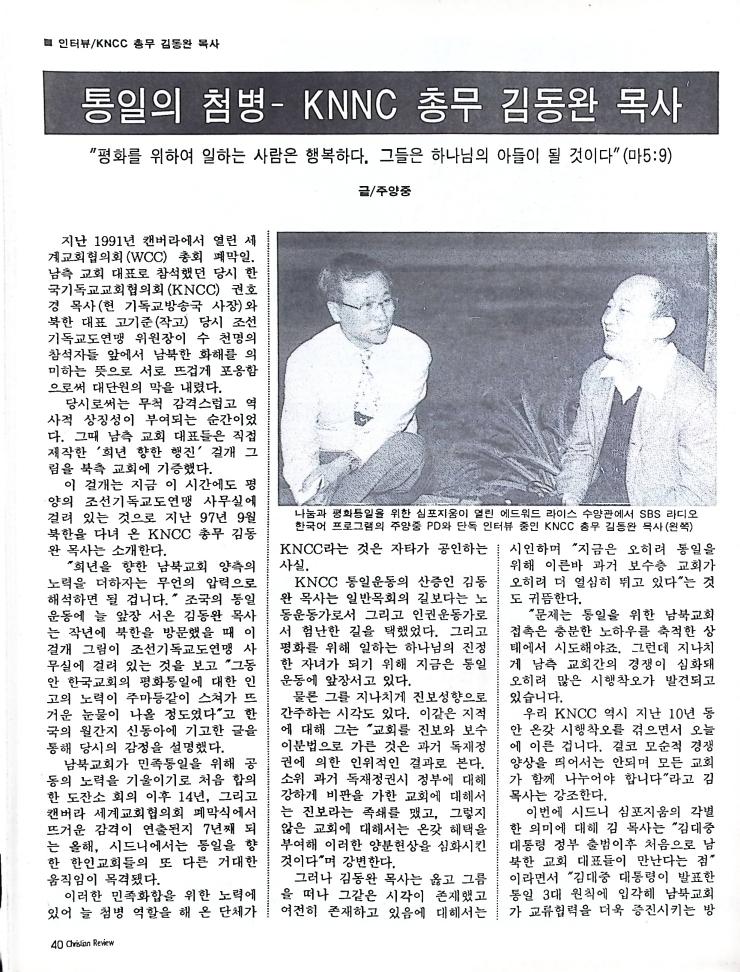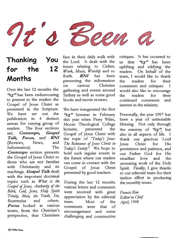 호주에서 1990년 1월부터 제작된 크리스찬 리뷰는 굳건한 신앙의 터전위에 교파를 초월한 신앙공동체로서 복음을 널리 전하기 위한 선교의 목적을 갖고 창간되었다. 4월의 생각-부활절과 부활의 실제 / 현장취재-동성애자들의 축제 마디 그라 / 기획특집-남북한 해외 한인교회 지도자들의 한반도 통일과 나눔을 위한 심포지움 / 지상중계-IMF와 기독교 / 지상중계-제30회 국가조찬기도회