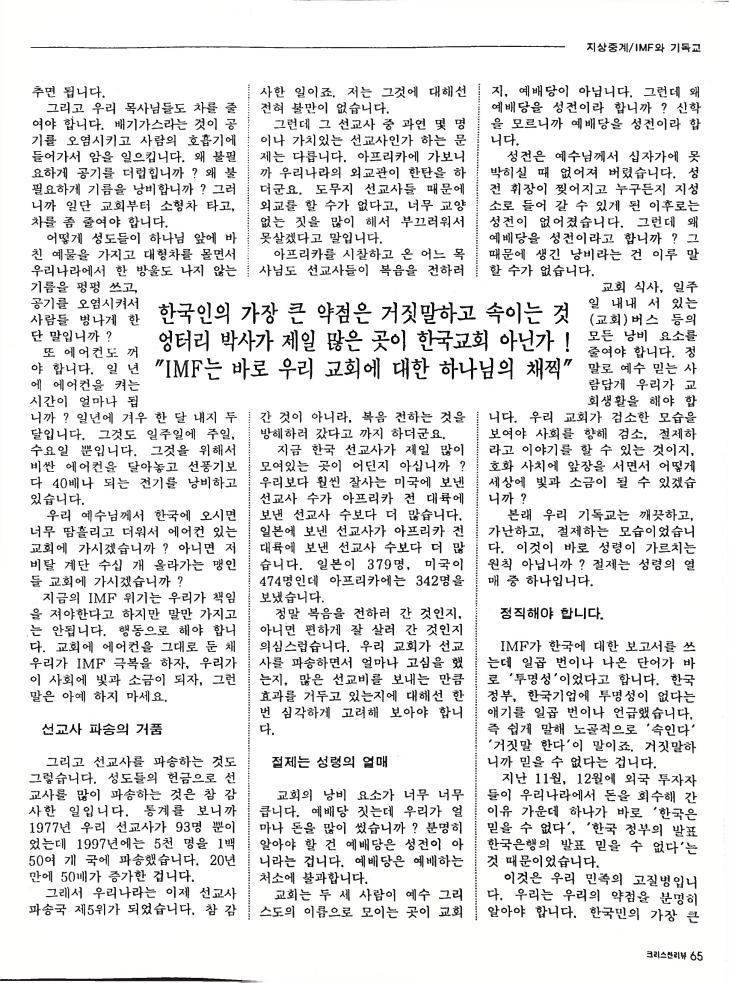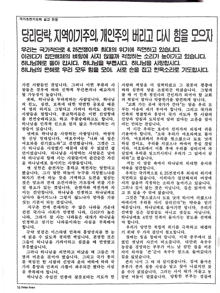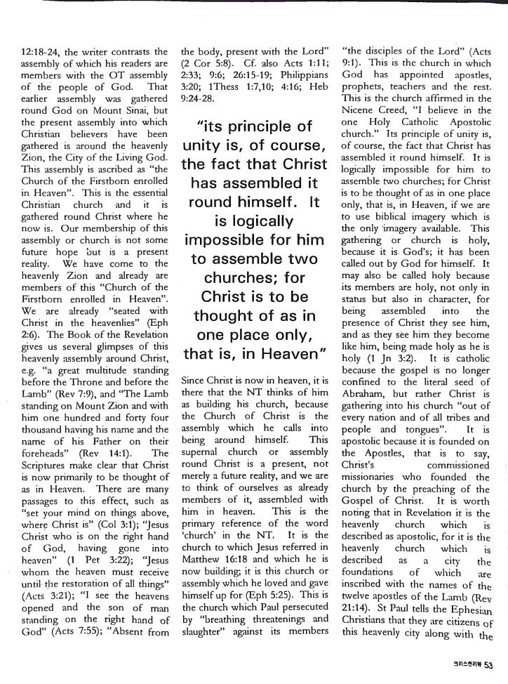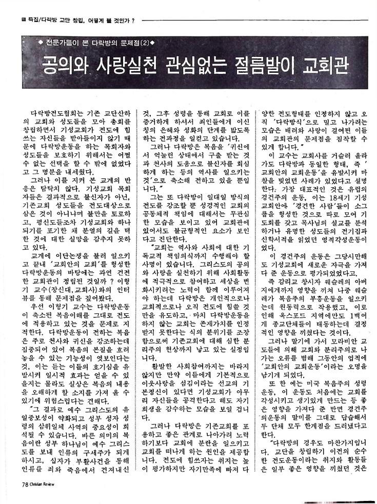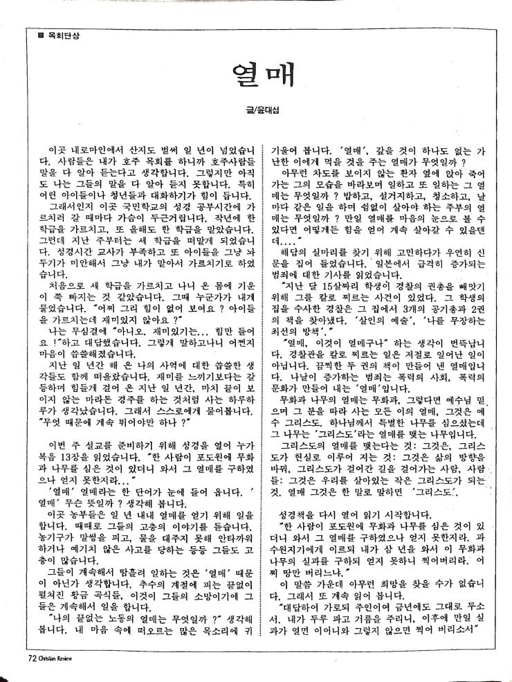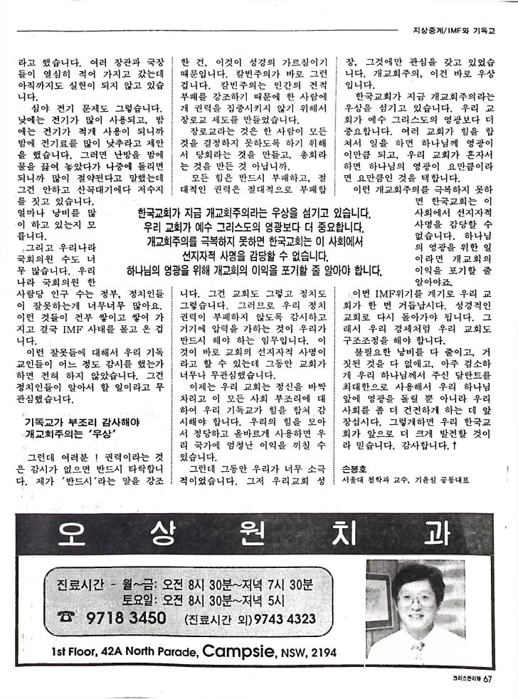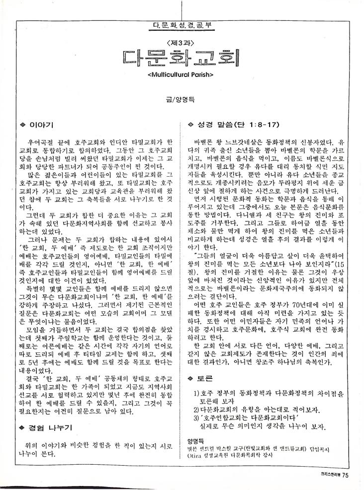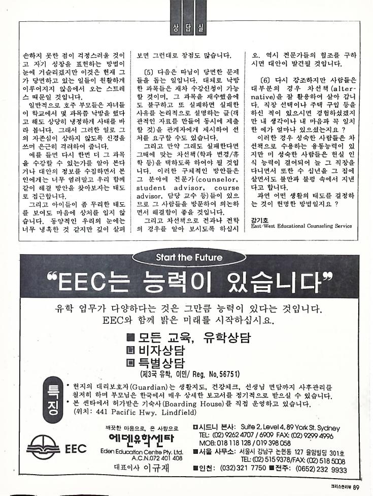 호주에서 1990년 1월부터 제작된 크리스찬 리뷰는 굳건한 신앙의 터전위에 교파를 초월한 신앙공동체로서 복음을 널리 전하기 위한 선교의 목적을 갖고 창간되었다. 4월의 생각-부활절과 부활의 실제 / 현장취재-동성애자들의 축제 마디 그라 / 기획특집-남북한 해외 한인교회 지도자들의 한반도 통일과 나눔을 위한 심포지움 / 지상중계-IMF와 기독교 / 지상중계-제30회 국가조찬기도회