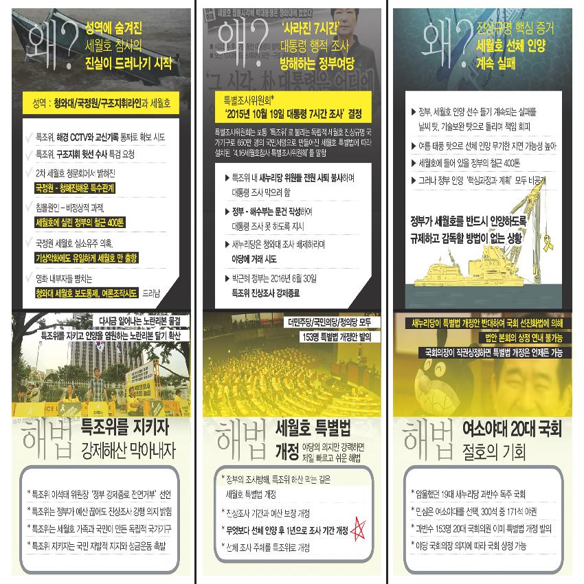 2016년 10월 29일 시드니 오페라 하우스 일대에서 있었던 세월호를 기억하는 시드니한인과 '세월호 기억 노란 우산'이 만나 철저한 진상조사와 아홉 분의 유실없는 인양과 수습을 위해 벌인 노란우산 퍼포먼스 전단이다