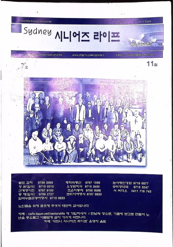 컴퓨터를 배워 카페에서 만남을 갖으며, 나이 잊고 젊게 살자 / 외로운 교포 노인들 / 불로장수하려면? / 인생은 진짜 환갑부터 / 발끝으로 걸으면 장수 / 457 비자의 스폰서가 서명하는 14가지 약속 / "그림으로 치매 이겨내요" / 식초의 효능 / 구순에도 청년처럼 활동하는 이창수(91세)옹