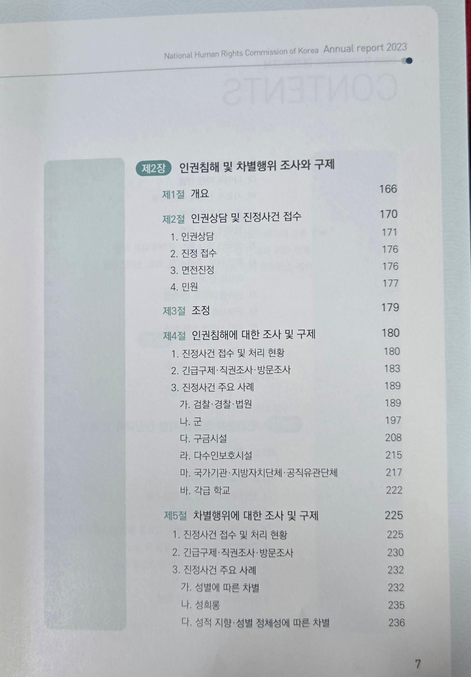 2023년 국가인권위원회에서 펴낸 인권보고서 연간보고서중 1권이다