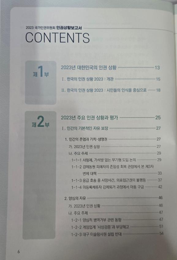 2024년에 국가인권위원회에서 발간한 2023 인권보고서중 2권인 인권상황보고서 이다