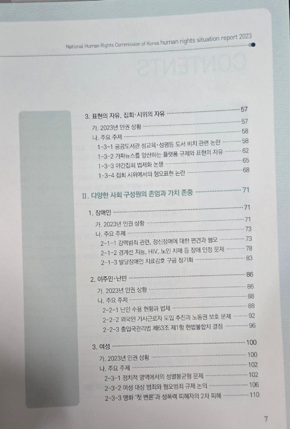 2023 국가인권위원회 인권보고서 제2권 인권상황보고서