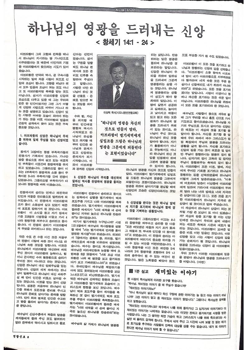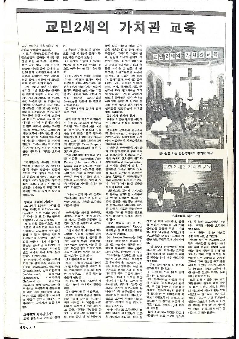 호주에서 1994년 9월 9일 발간된 연합기독신보 Younhab Christian News 제 14 호이다 시드니 한인연합교회 제 20주년 창립기념 뮤지컬 <지금 우리는> / 교민2세의 가치관 교육 / 하나님의 영광을 드러내는 신앙 / 연합교회의 전신인 스트라스필드 회중교회의 역사 / 선교통신 - 헝가리 등의 기사를 싣고 있다