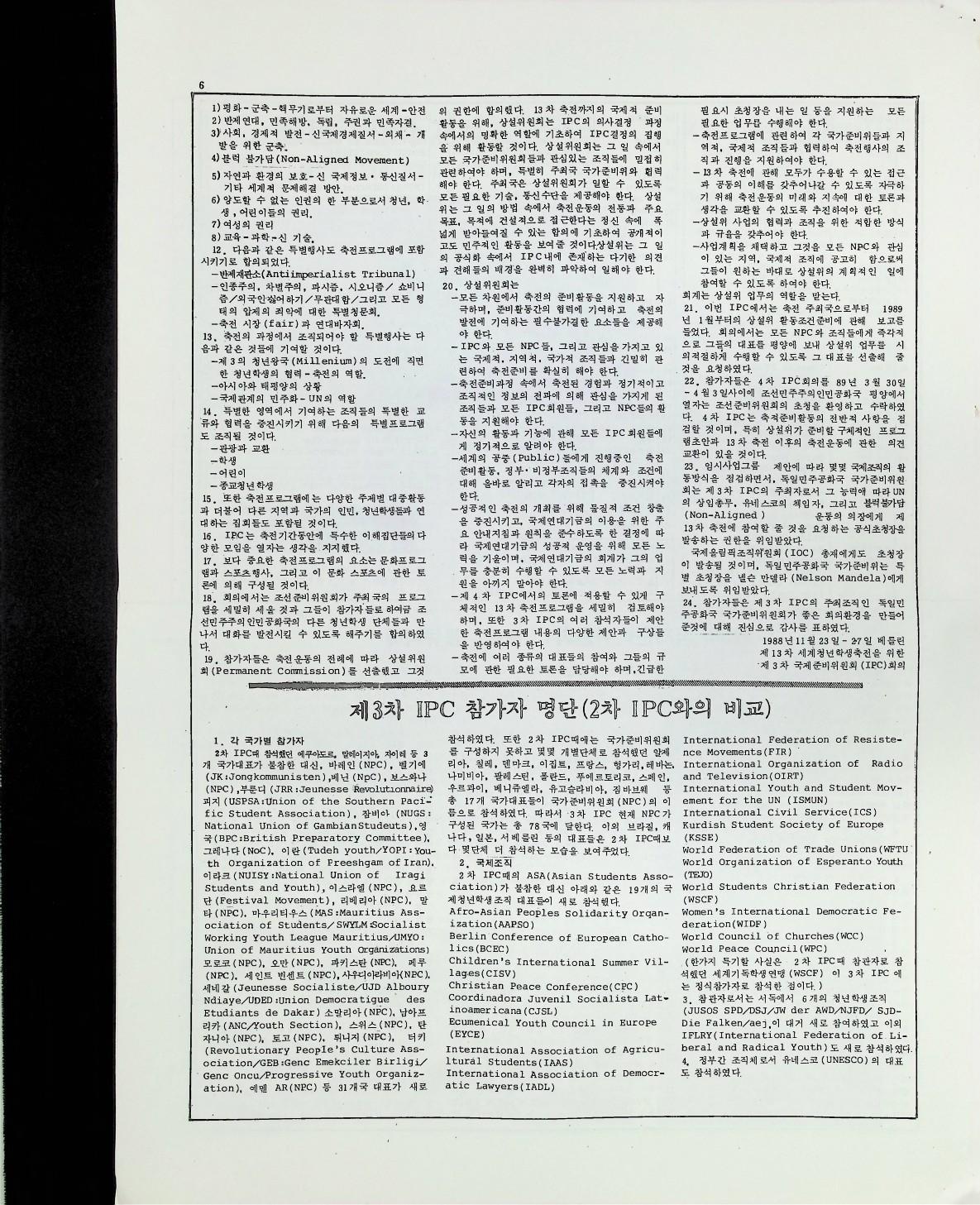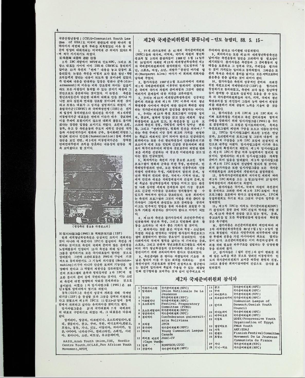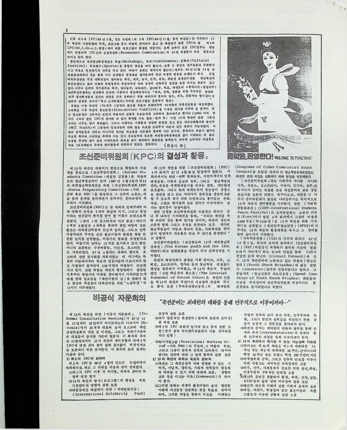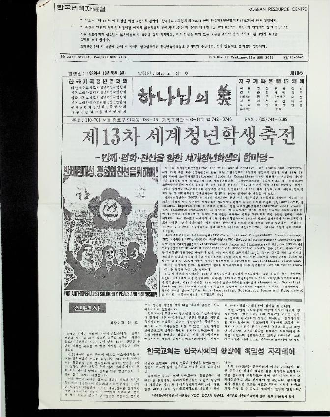 제 13차 세계 청년 학생 축전에 관하여 한국기독교회협의회( KNCC ) 산하 한국기독청년협의회 ( EYC) 에서 만든 자료를 1월 9일자 한국기독청년협의회에서 만든 '하나님의 의' 신문에 실은 기사이다