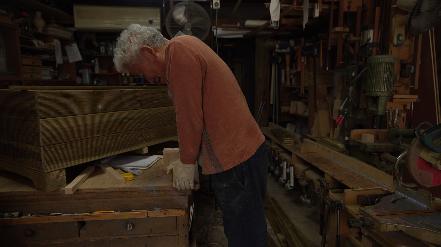 양주장 만드는 과정을 설명함. 가공 과정에 쓰이는 목재는 주로 수입목재를 사용하고 접착제는 친환경 시스템의 국산 접착제를 사용함. 조각일을 시작으로 목수일도 배움. 숭의동에서 30년 넘게 사업장을 운영하여 이어가게 선정됨. 목공예센터에서 다양한 연령층의 수강생을 대상으로 교육하고 있음.