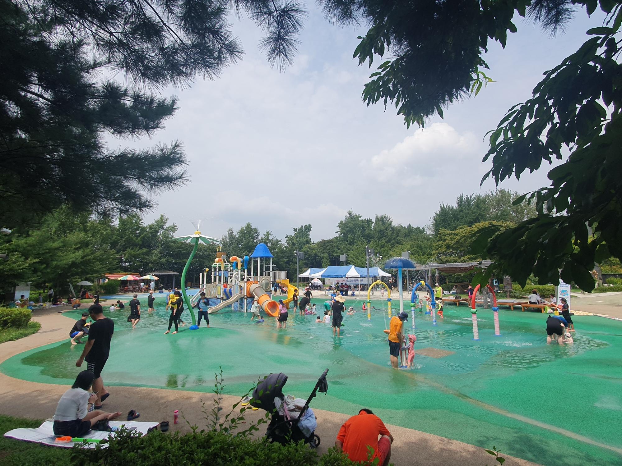 물이 있어도 잘 놀고, 없어도 잘 노는 수봉공원 물놀이장.