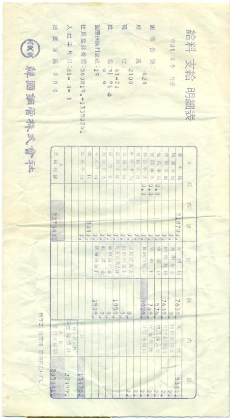 한국강관 월급봉투