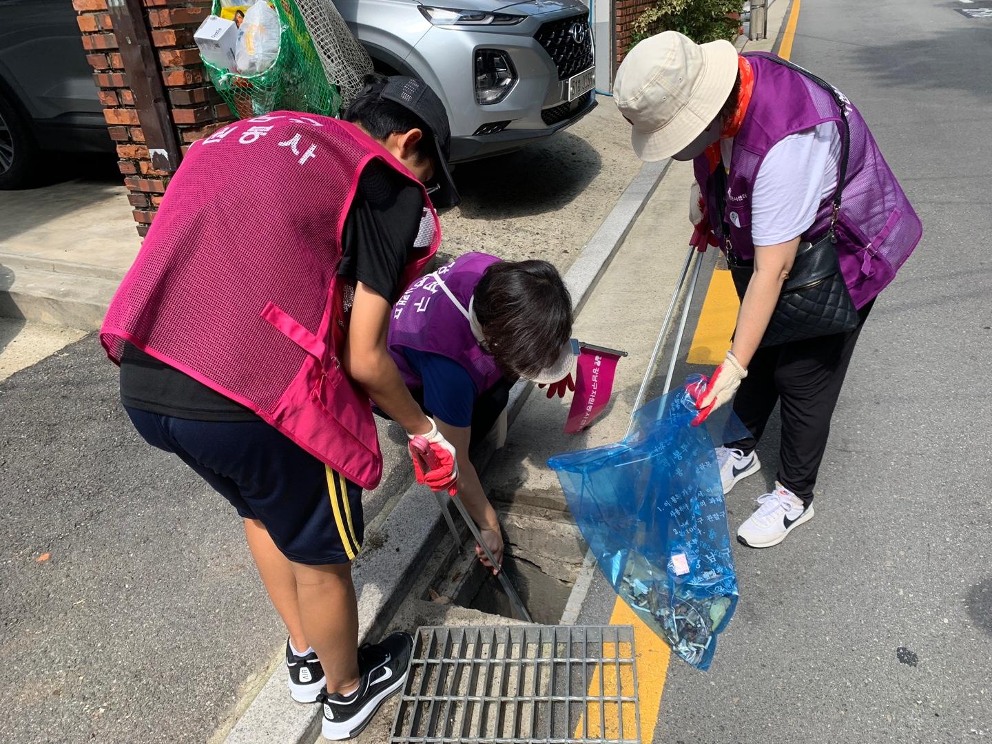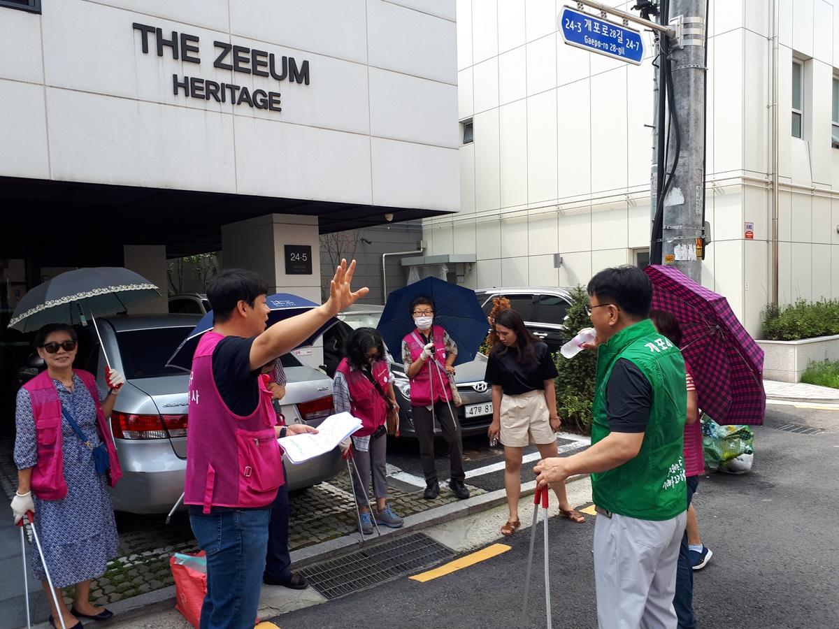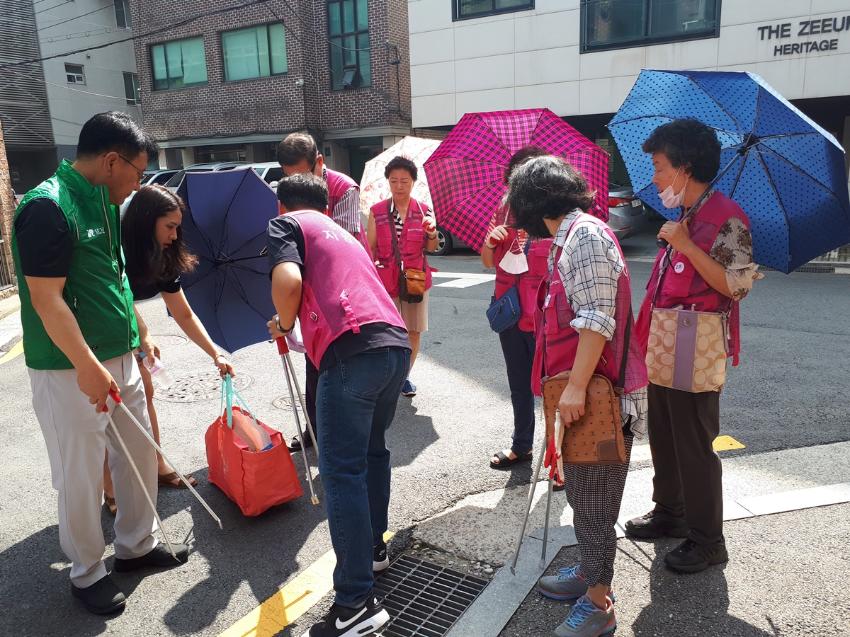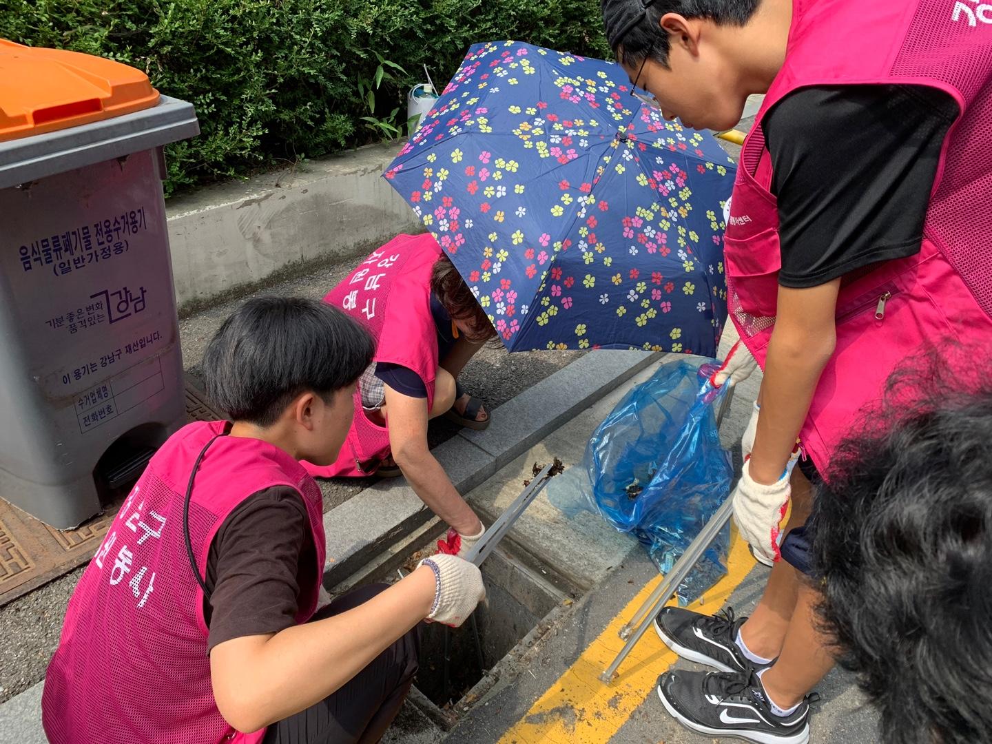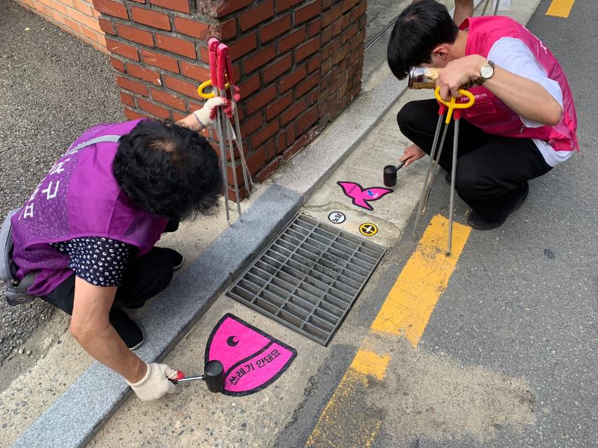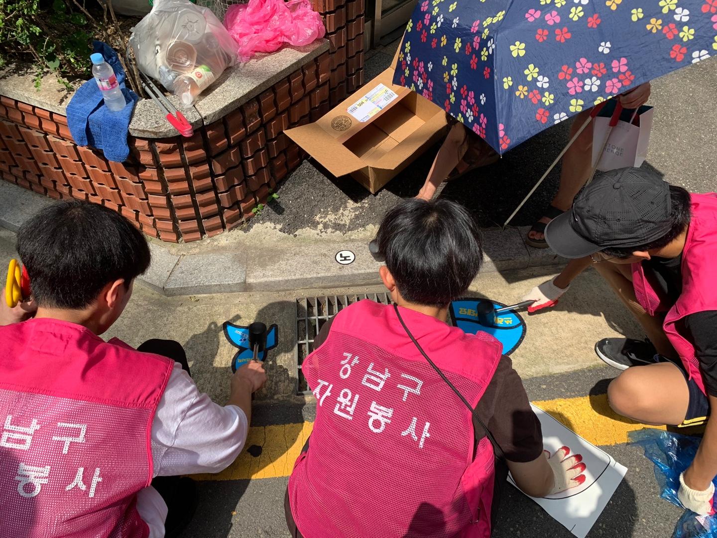 행사내용 : 개포4동 이면도로 빗물받이 청소 및 쓰레기 불법투기를 예방 스티커 부착 캠페인 전개