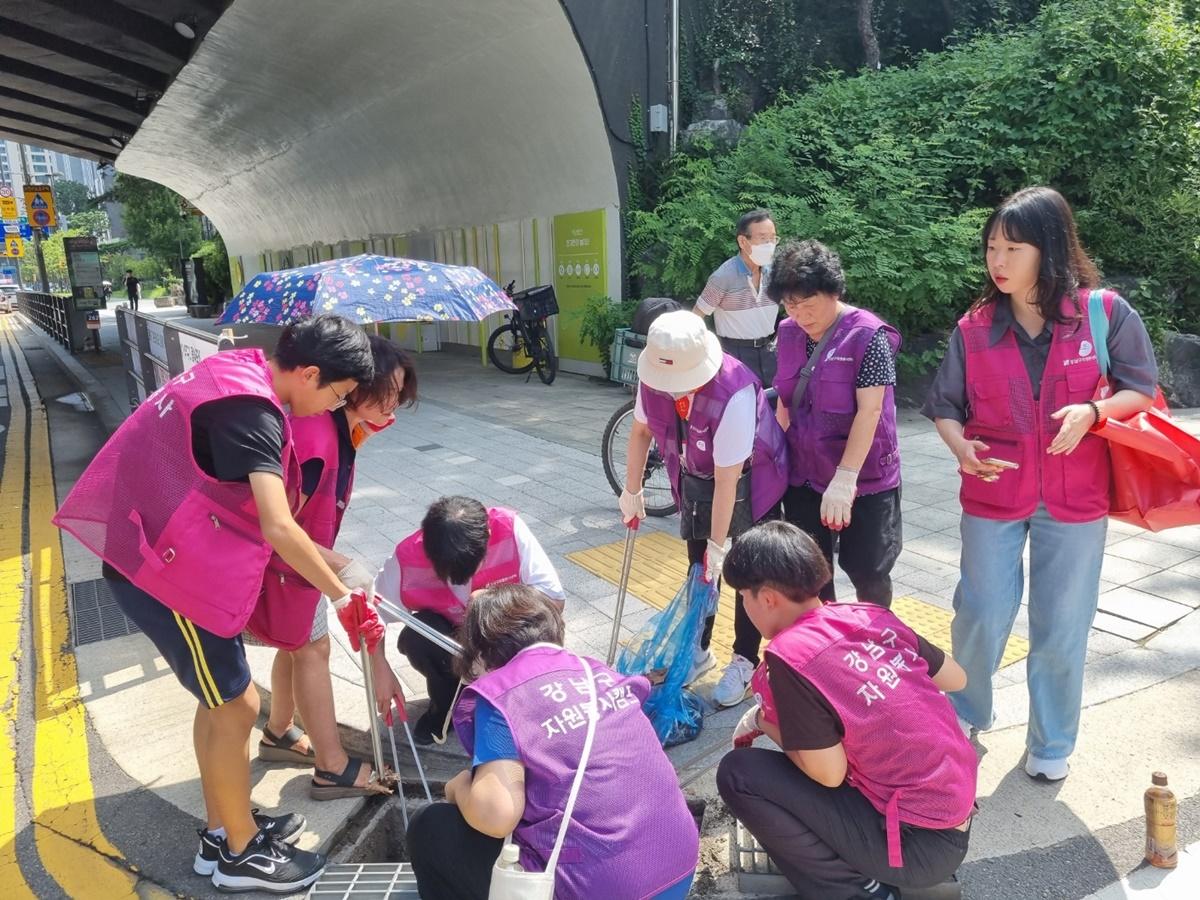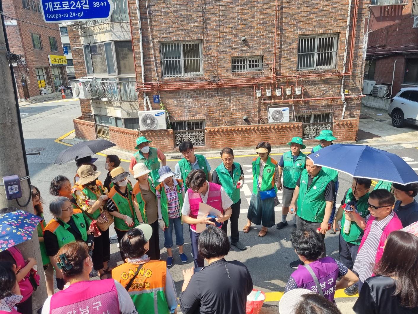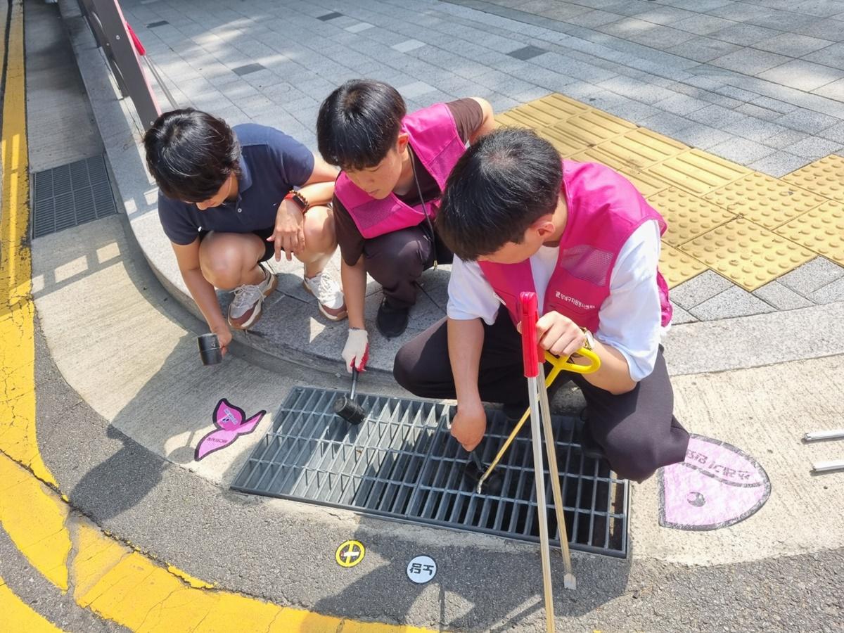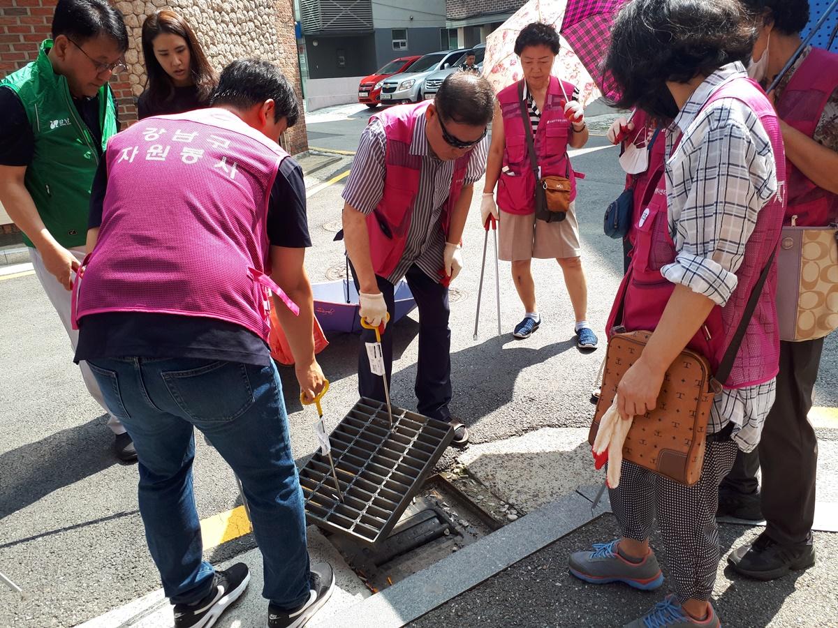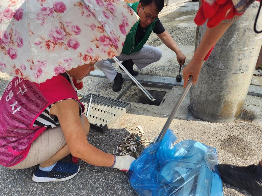 행사내용 : 개포4동 이면도로 빗물받이 청소 및 쓰레기 불법투기를 예방 스티커 부착 캠페인 전개