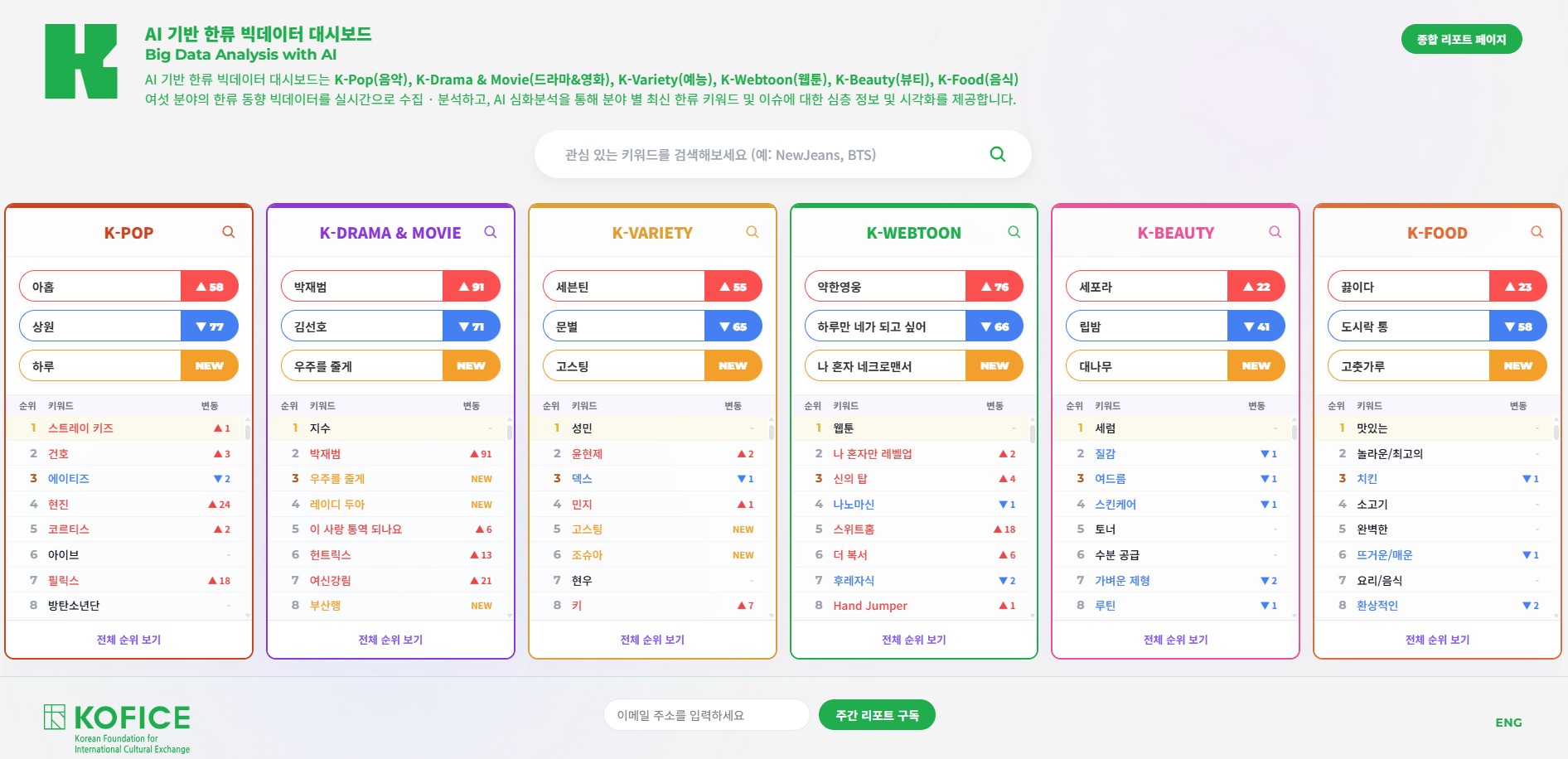[그림 1] AI 기반 한류 빅데이터 대시보드 메인 페이지