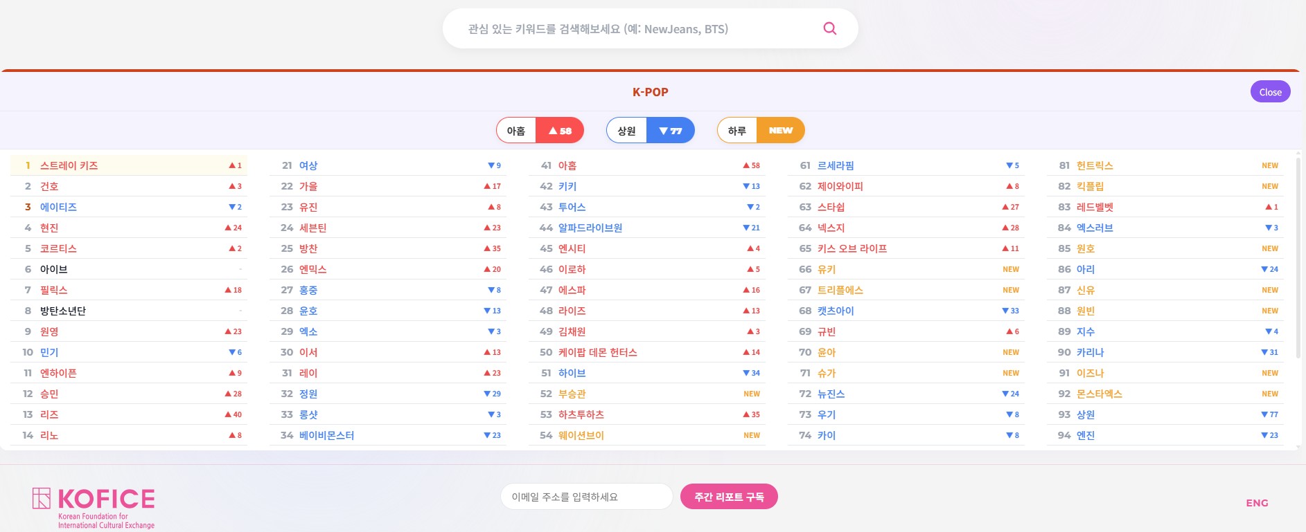 [그림 2] 케이팝 장르별 키워드 랭킹 1~100위